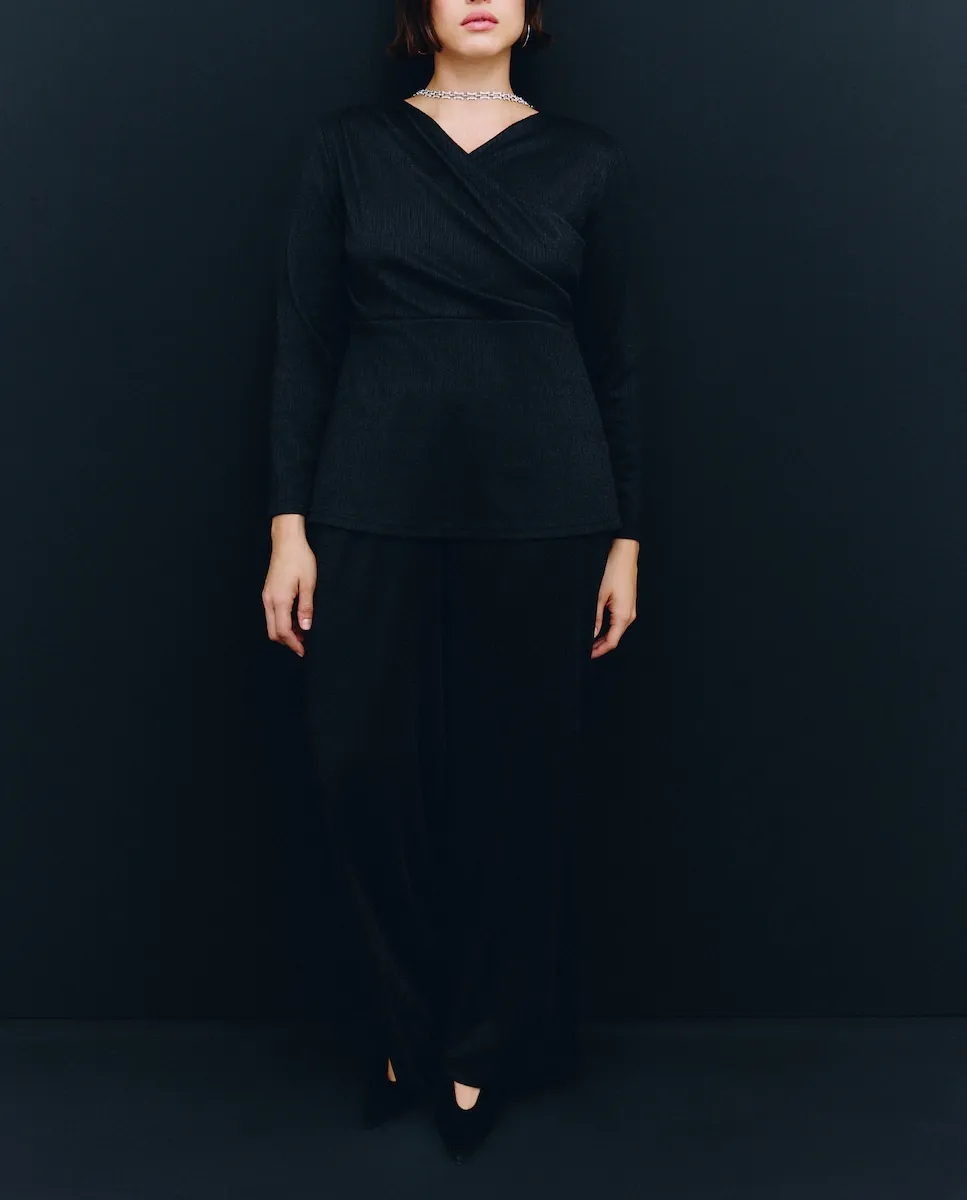 Прямые классические брюки из легкой ткани с деталями из люрекса.