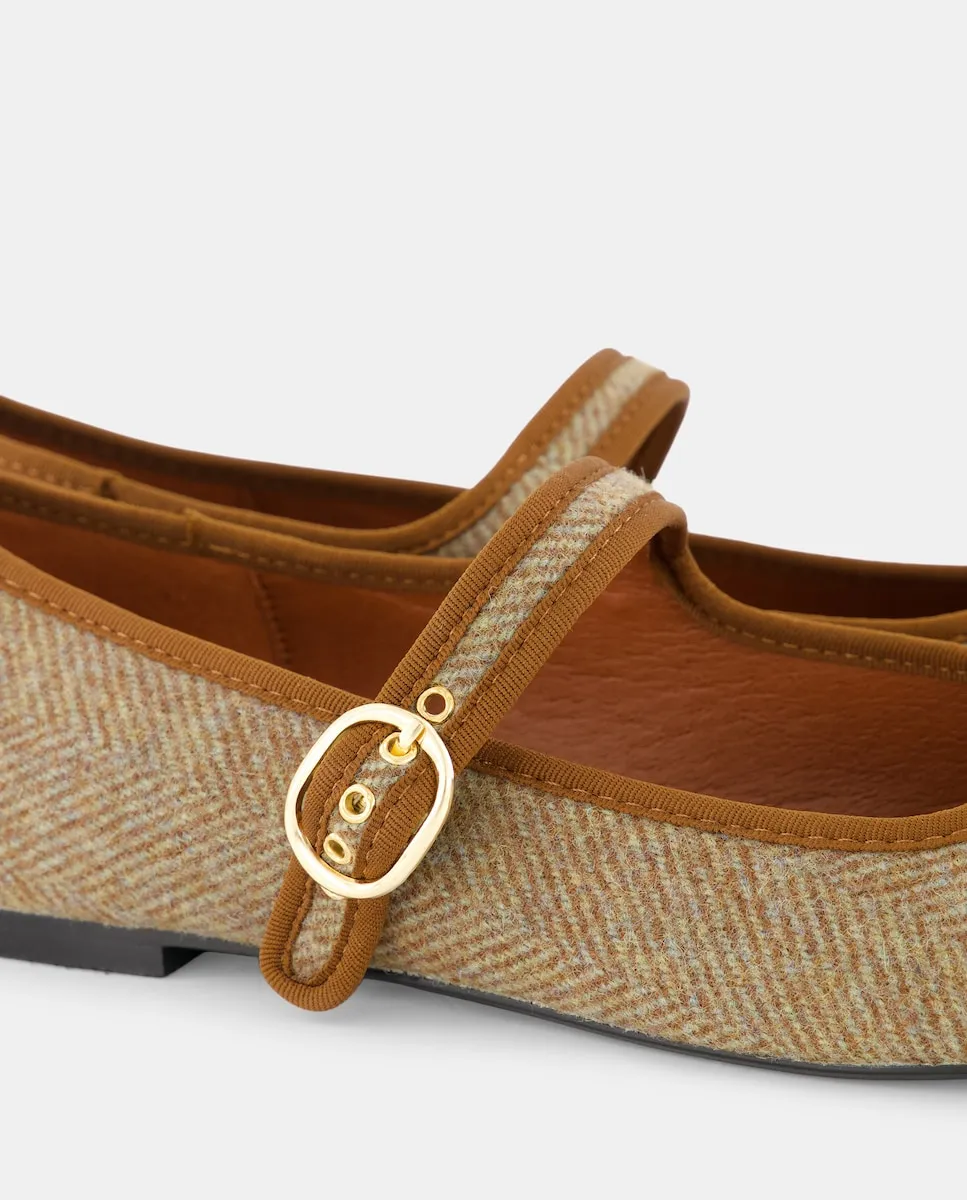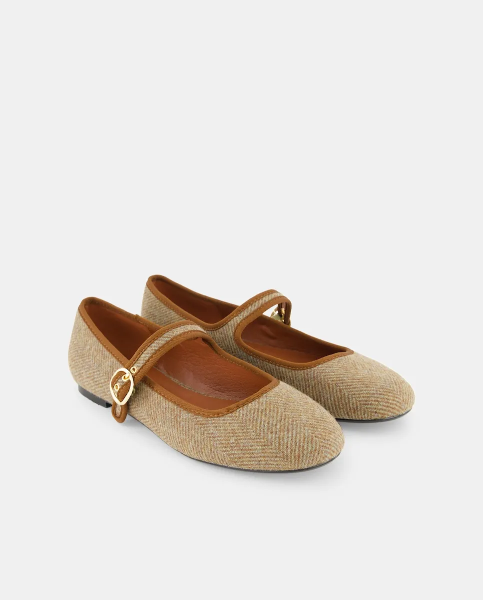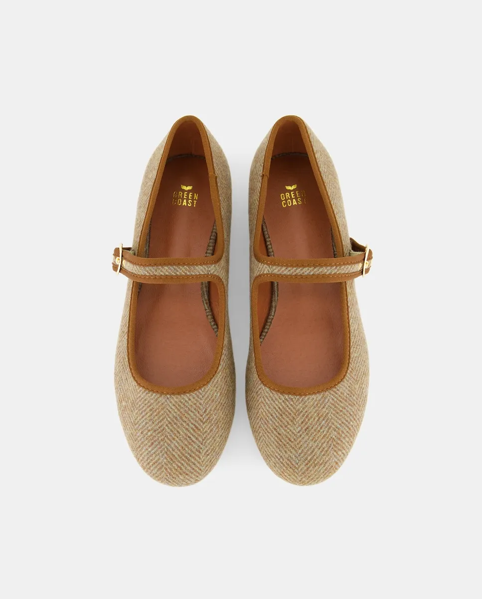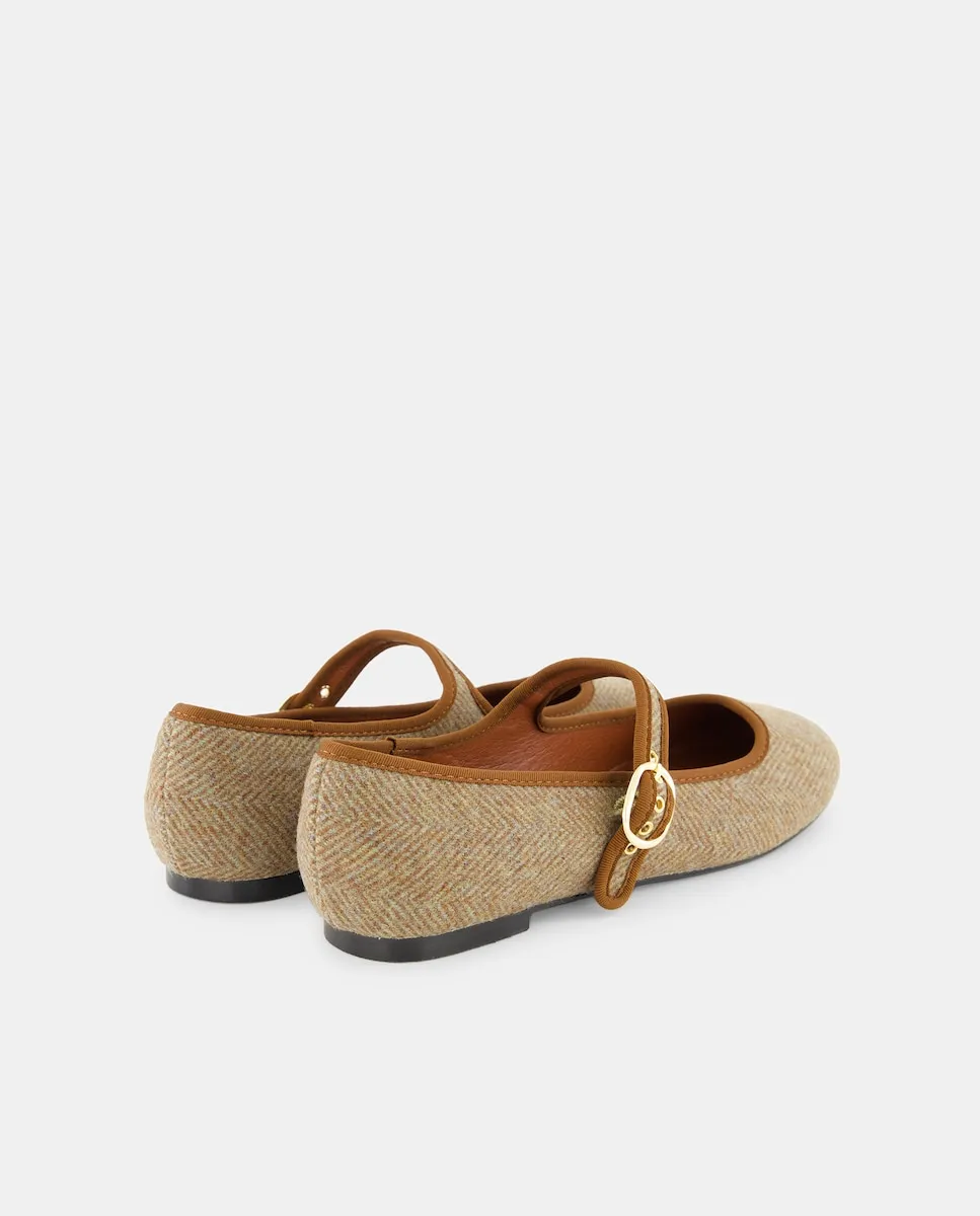 Мерседита из 100% шерсти с рисунком елочка и отделкой из ткани табачного цвета.
