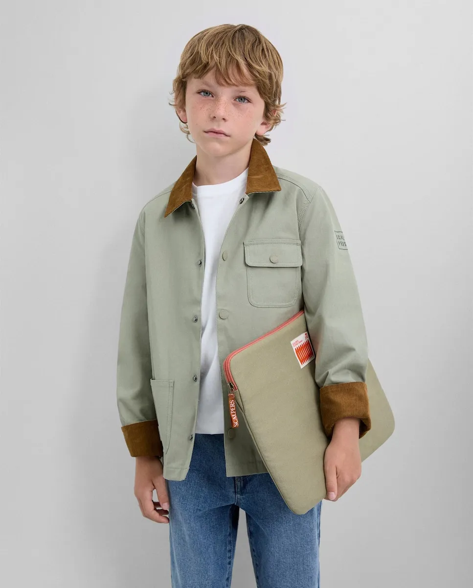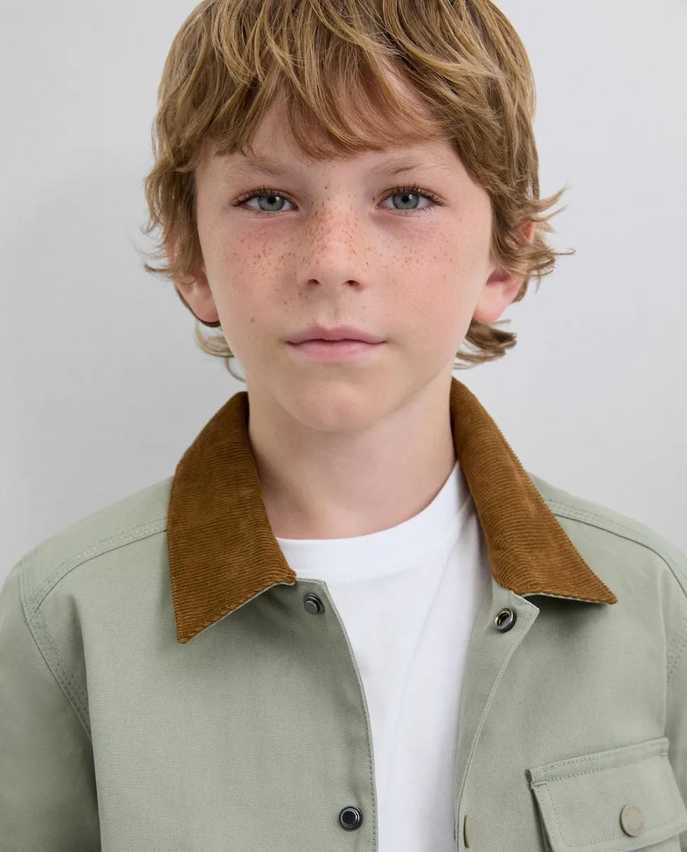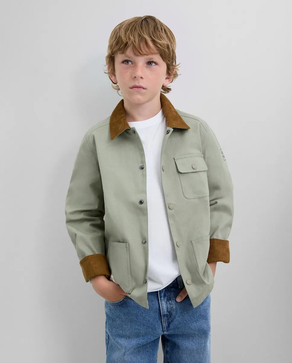 Детская хлопковая куртка с воротником-рубашкой Scalpers, хаки