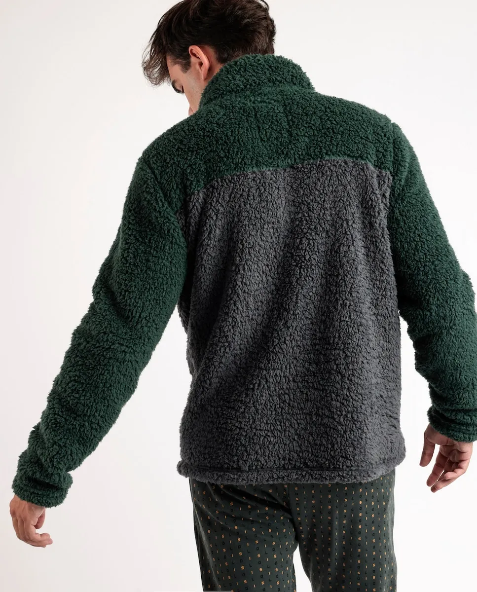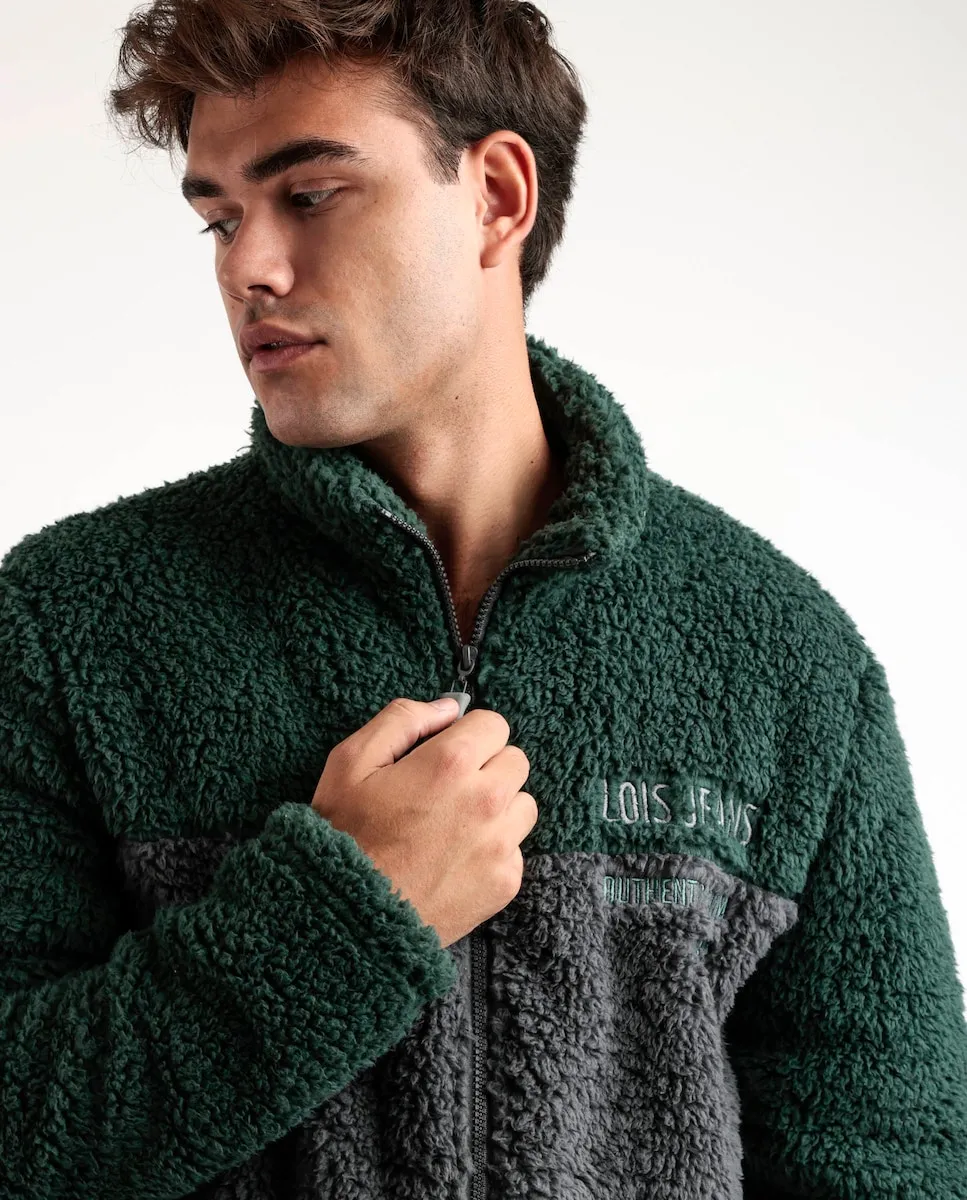 Очень теплая куртка из специальной ткани с мягким ворсом, длинными рукавами и застежкой-молнией, в двух цветовых сочетаниях: темно-синий и хаки. Имеет карманы и вышитые детали.