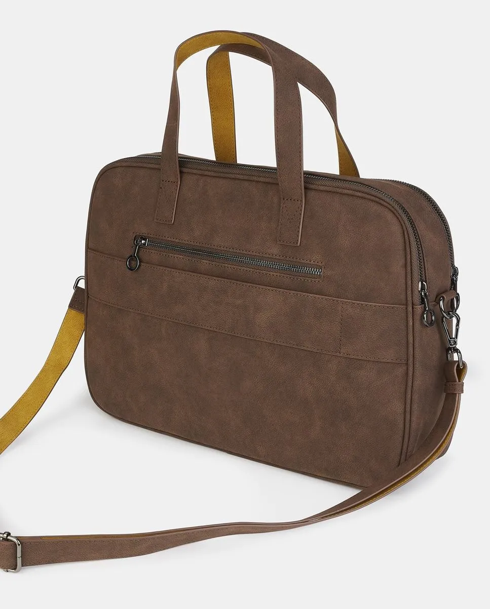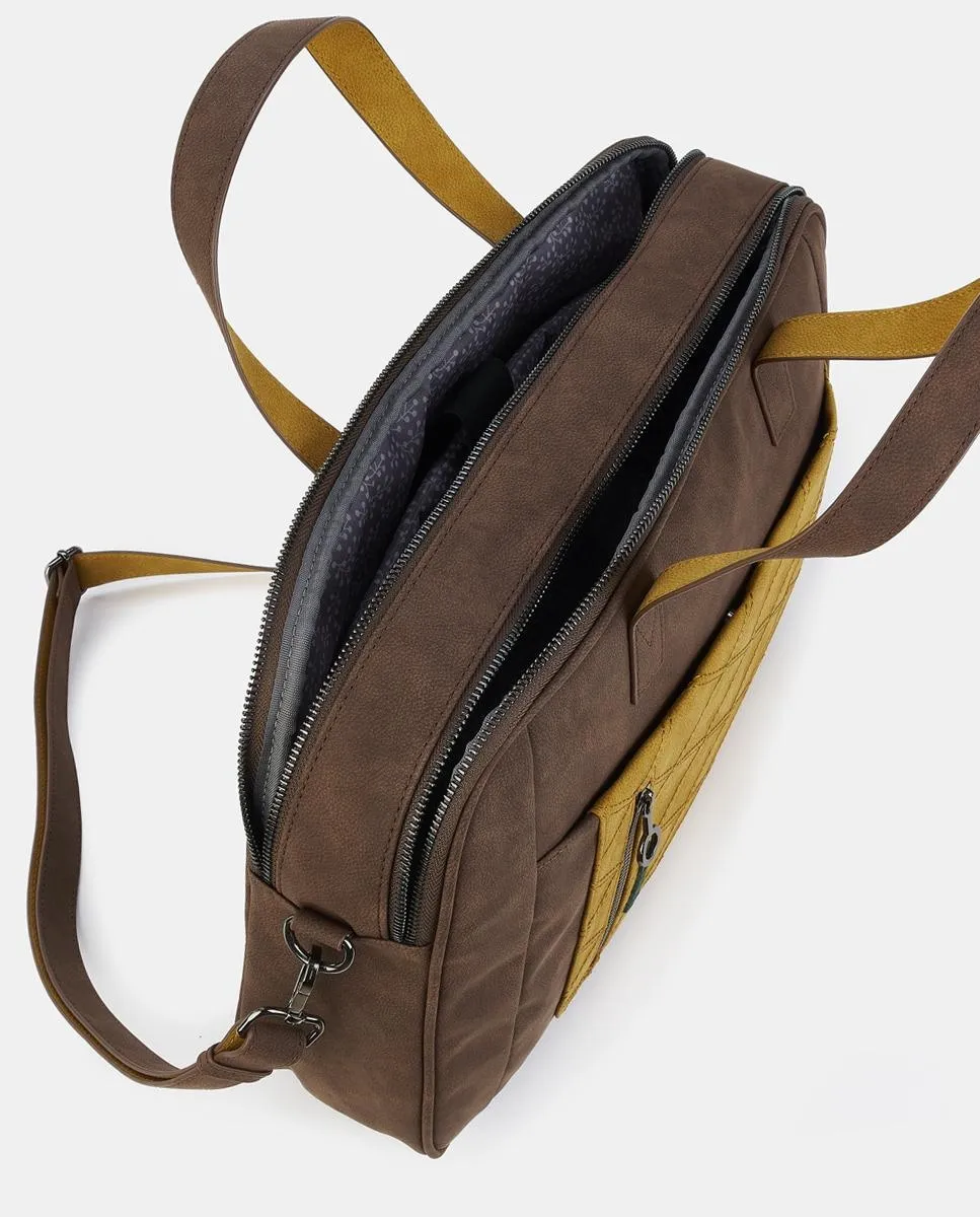 Черная папка для документов с молнией. Внешний, задний и внутренний карманы на молнии. Две короткие ручки и длинный регулируемый и съемный ремень через плечо.