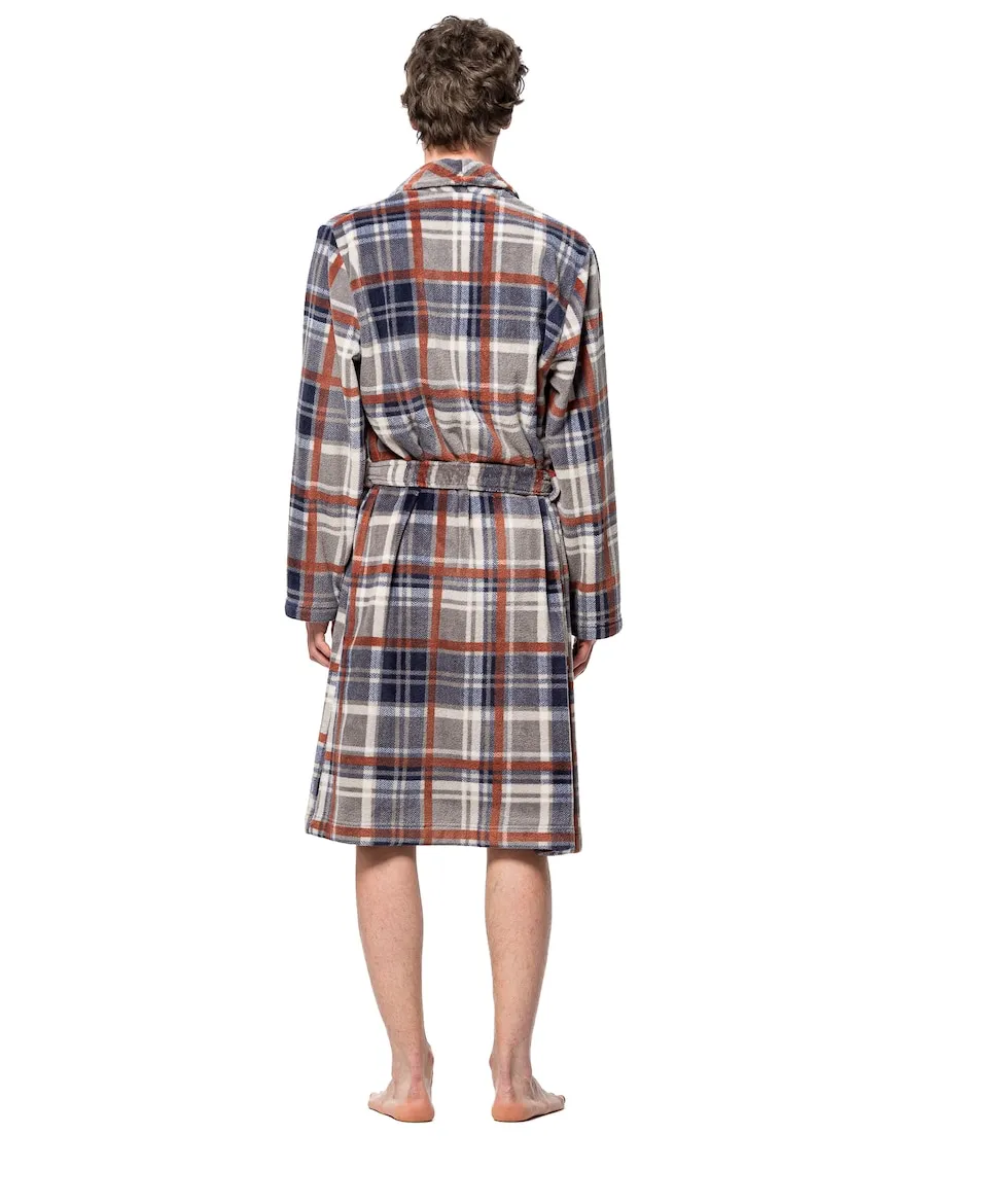 Халат для мужчин SOY с дизайном смокинга, изготовленный из ультрамягкой ткани с клетчатым узором. Его отложной воротник придает элегантный и неподвластный времени стиль, а боковые карманы и регулируемый пояс обеспечивают комфорт и практичность. Идеально подходит для зимы, обеспечивая тепло и уют дома с современным и комфортным дизайном.