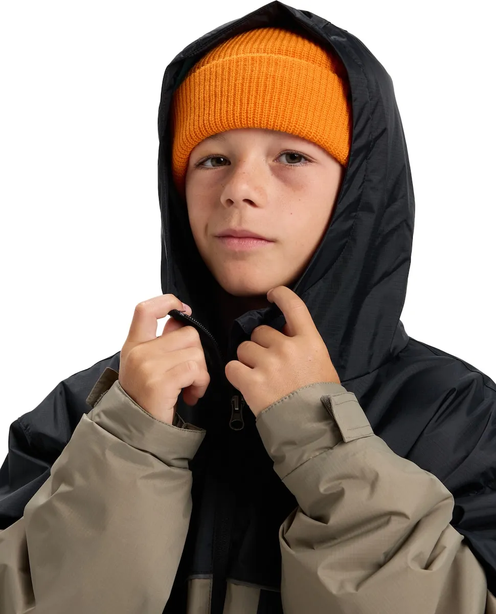 Куртка-пончо для детей 8-16 лет. Особенности включают: Предназначено для: ежедневных приключений, ПРЕИМУЩЕСТВА: Куртка с дополнительным пространством для легкой переодевания после водных процедур., Сделано лучше, Долговечная водоотталкивающая обработка без ПФС, Материал: полиамид, переработанный полиамид 102 г/м², ОСОБЕННОСТИ: Крой: дополнительный комфорт, Внутренний материал: полиэстер флис, Капюшон: фиксированный капюшон, Застежка: фронтальная молния, Карманы: 2 боковых кенгуру, нагрудный накладной карман, Прочее: манжеты с регулируемыми язычками.