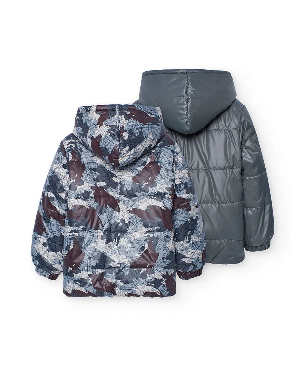 Детская техническая двусторонняя парка с элегантным абстрактным принтом в серых тонах, идеально подходящая для зимнего сезона. Изготовленная из прочных и теплых материалов, она обеспечивает отличную защиту от холода, отлично подходит для активного отдыха на свежем воздухе. Оснащена интегрированным капюшоном и застежкой-молнией для большего комфорта и удобства. Доступна в размерах от 2 до 14 лет, легко сочетается со спортивными брюками или джинсами для полноценного зимнего образа. Ее современный и функциональный дизайн делает ее незаменимым элементом гардероба для самых маленьких.