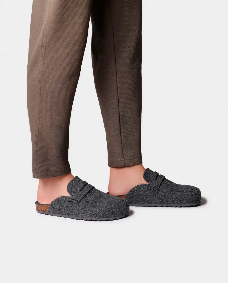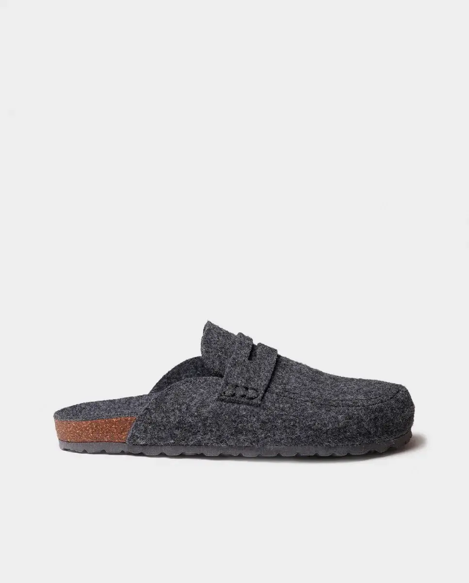 Эти мужские тапочки из хлопчатобумажного полотна изготовлены из войлока. Они оснащены ремешком на подъеме стопы. Внутренняя стелька обшита войлоком для большего комфорта. Подошва выполнена из пробки и EVA-резины, высота подошвы - 2,5 см.