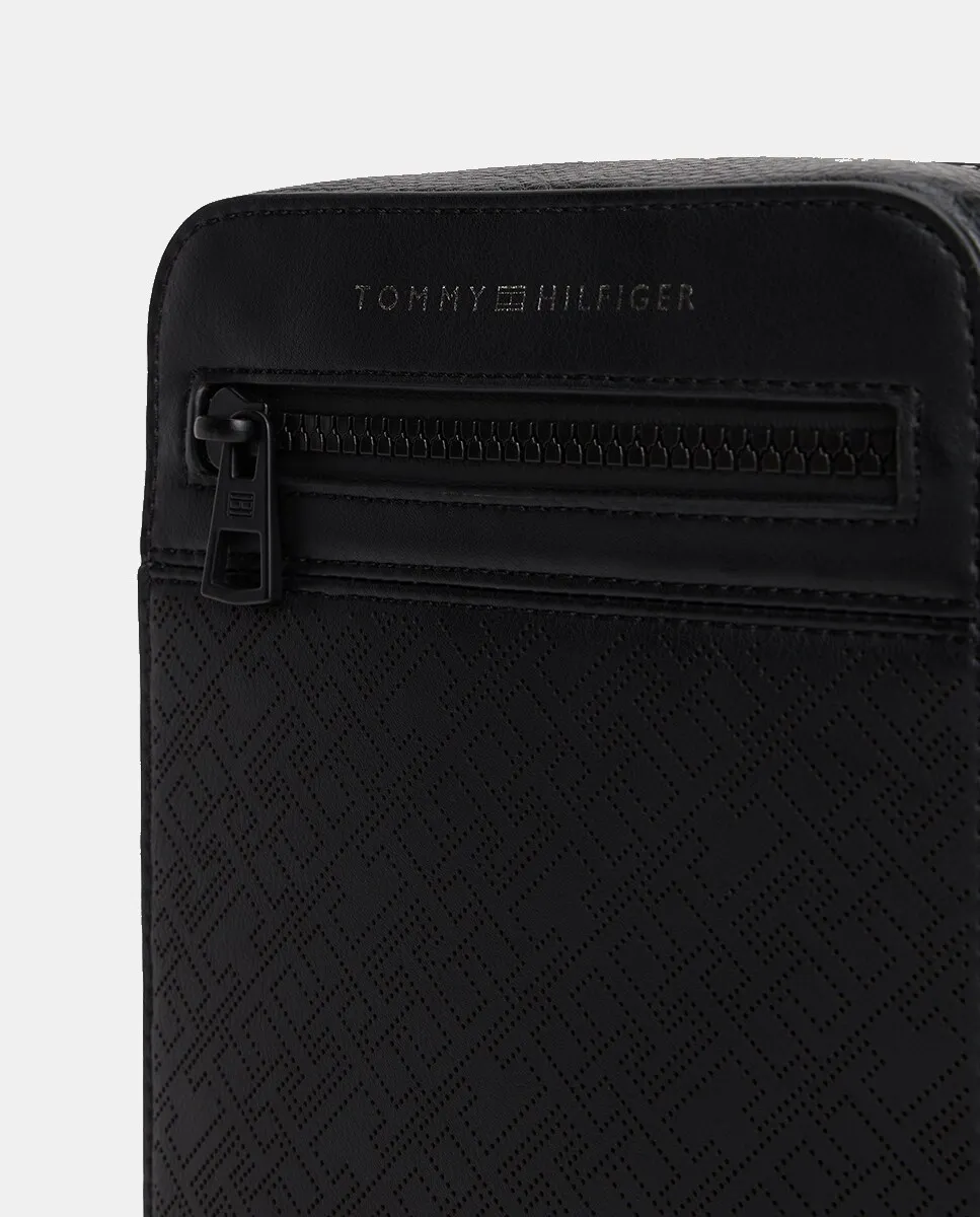 Мини-сумка в стиле репортера, выполненная из черного полиуретана с элегантным тиснением монограммы TH. Компактный дизайн с регулируемым ремнем через плечо и отделением на молнии. Идеально подходит для того, чтобы носить необходимые вещи стильно и удобно.