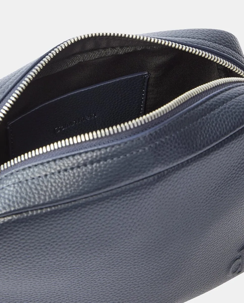 Удлиненная мужская сумка через плечо Calvin Klein с застежкой-молнией. Регулируемый спортивный ремень серого цвета.