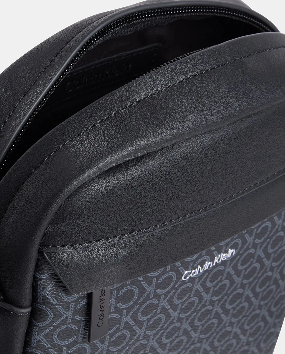 Классическая мужская сумка через плечо Calvin Klein с регулируемым широким ремнем и застежкой-молнией. Передний карман с монограммным принтом и застежкой-молнией.