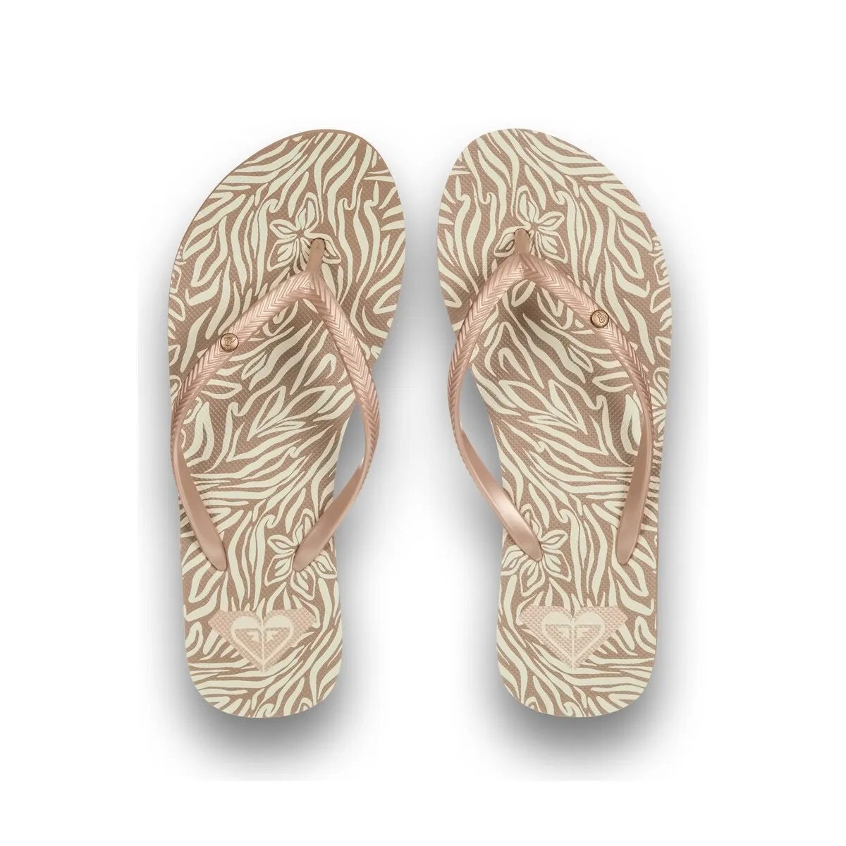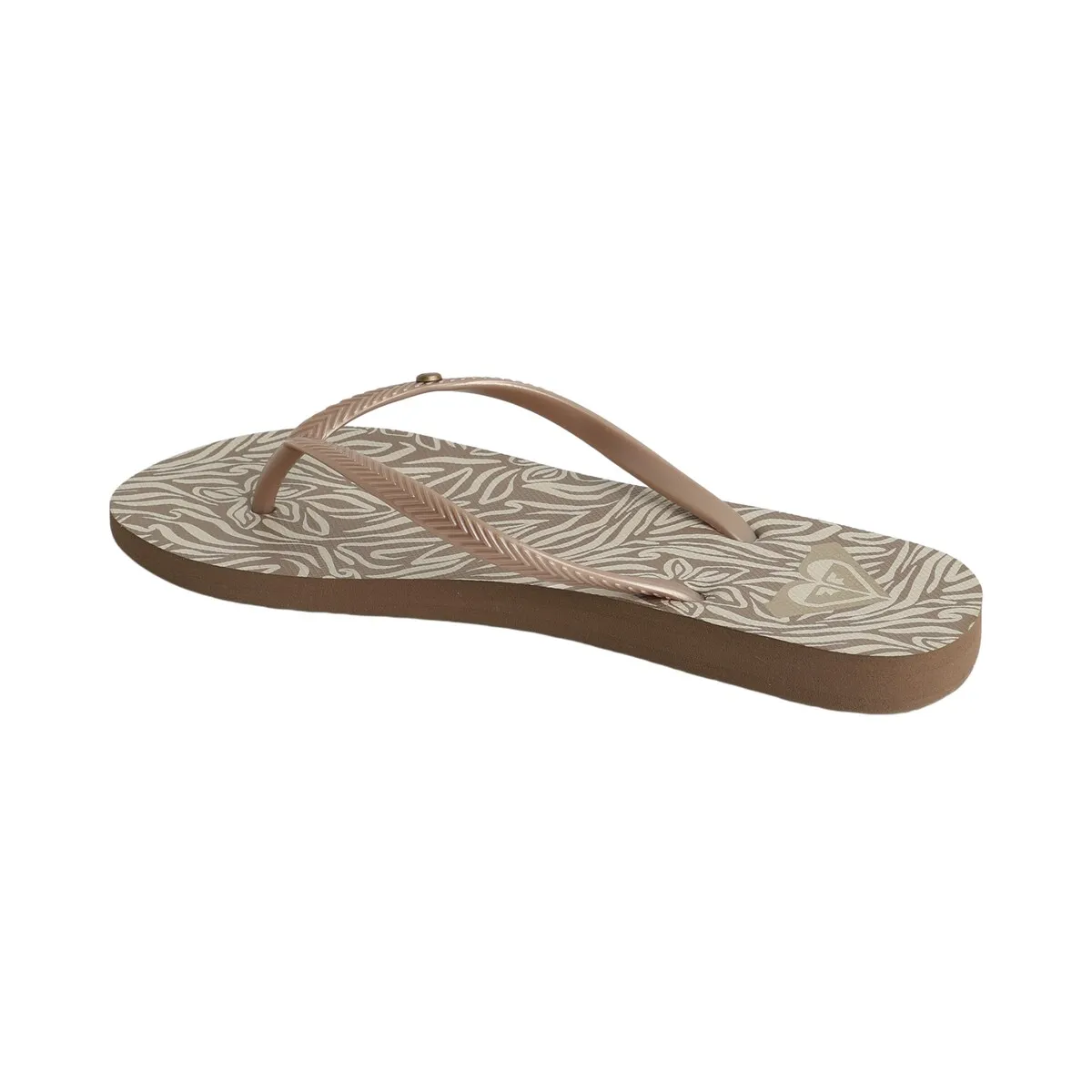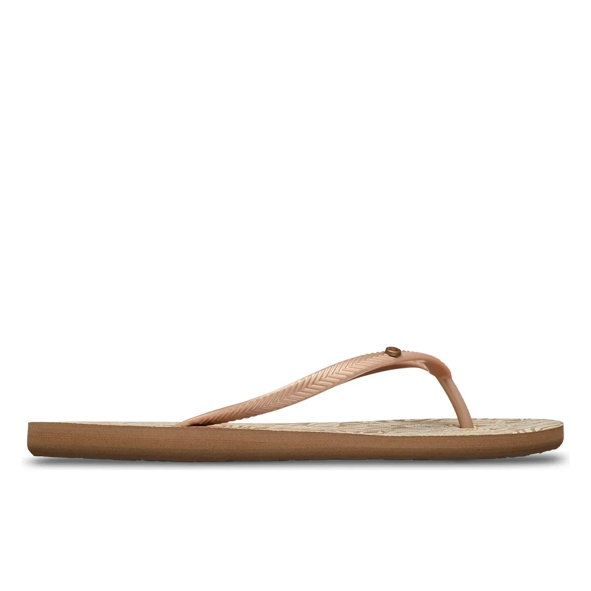 Женские сандалии. Характеристики включают: Материал: без ПВХ, Верх: ремешки из ТР с металлическим логотипом, Стелька: переработанный ЭВА с экологичным принтом, Подошва: переработанный ЭВА с классическими элементами Roxy.