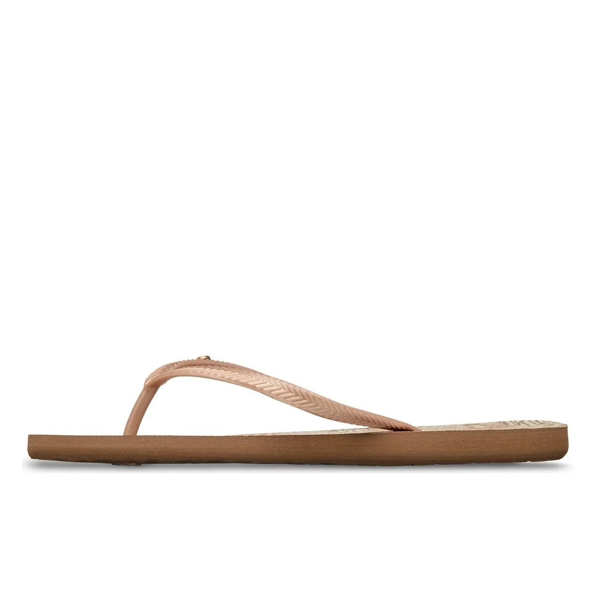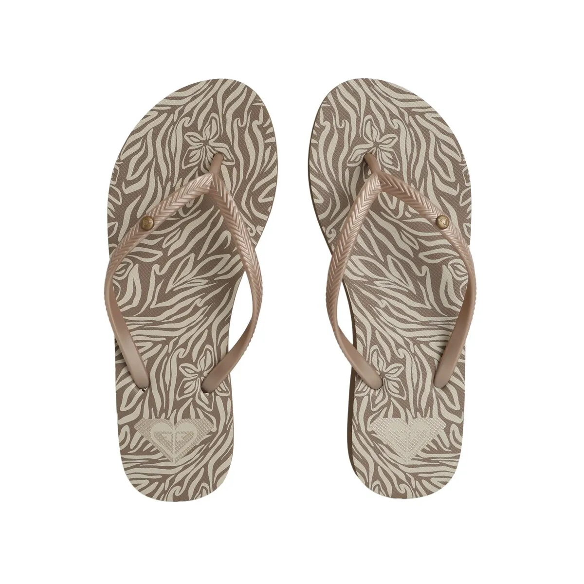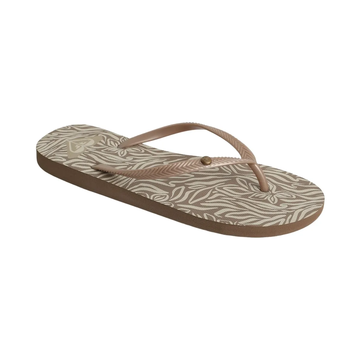 Женские сандалии. Характеристики включают: Материал: без ПВХ, Верх: ремешки из ТР с металлическим логотипом, Стелька: переработанный ЭВА с экологичным принтом, Подошва: переработанный ЭВА с классическими элементами Roxy.