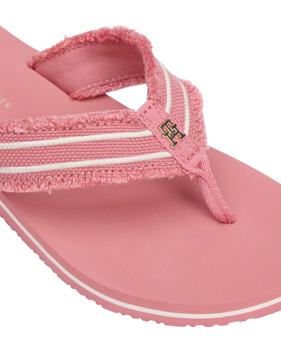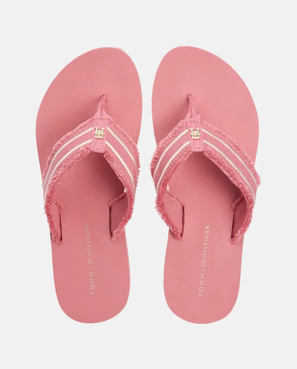 Шлепанец, выполненный из переработанного полиэстера и хлопка. Металлизированный золотой логотип TH.