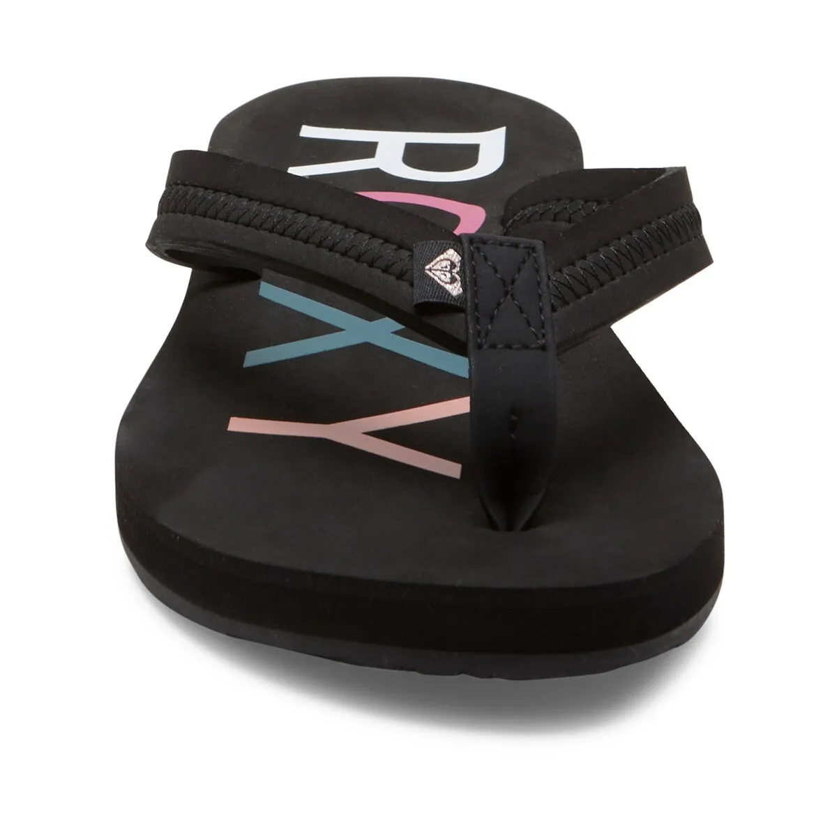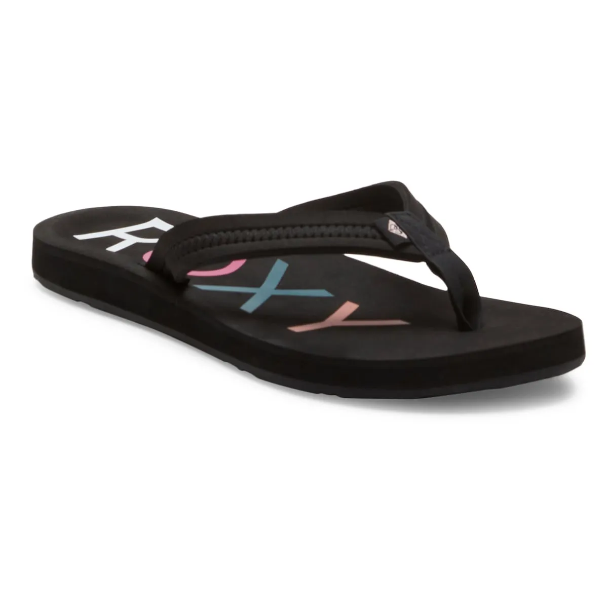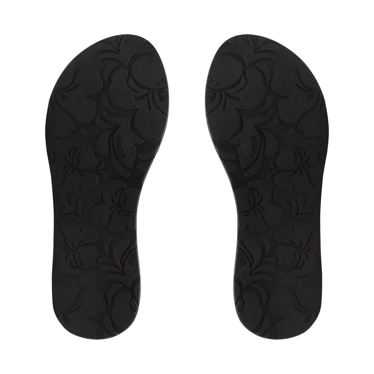 Женские пляжные шлепанцы. Характеристики включают: верх из полиэстера и водоотталкивающей кожи EVA, мягкая профилированная EVA, стелька с формованным логотипом ROXY, подошва из переработанного TPR с классическими деталями Roxy для лучшего сцепления на мокрых и сухих поверхностях, а также внутренняя ткань из EVA.