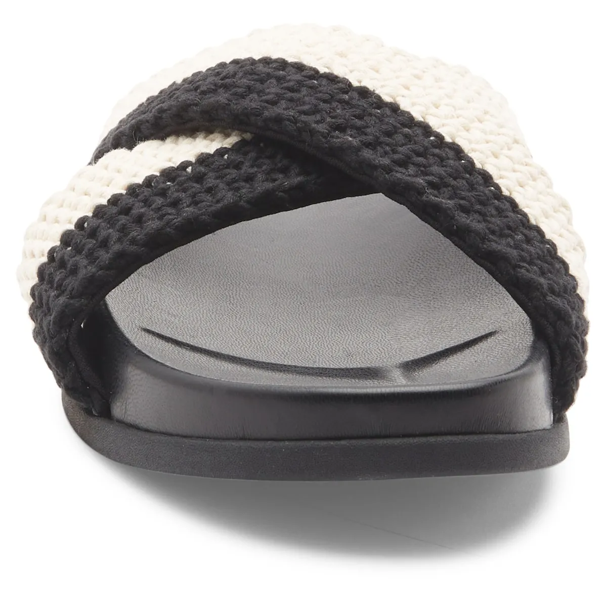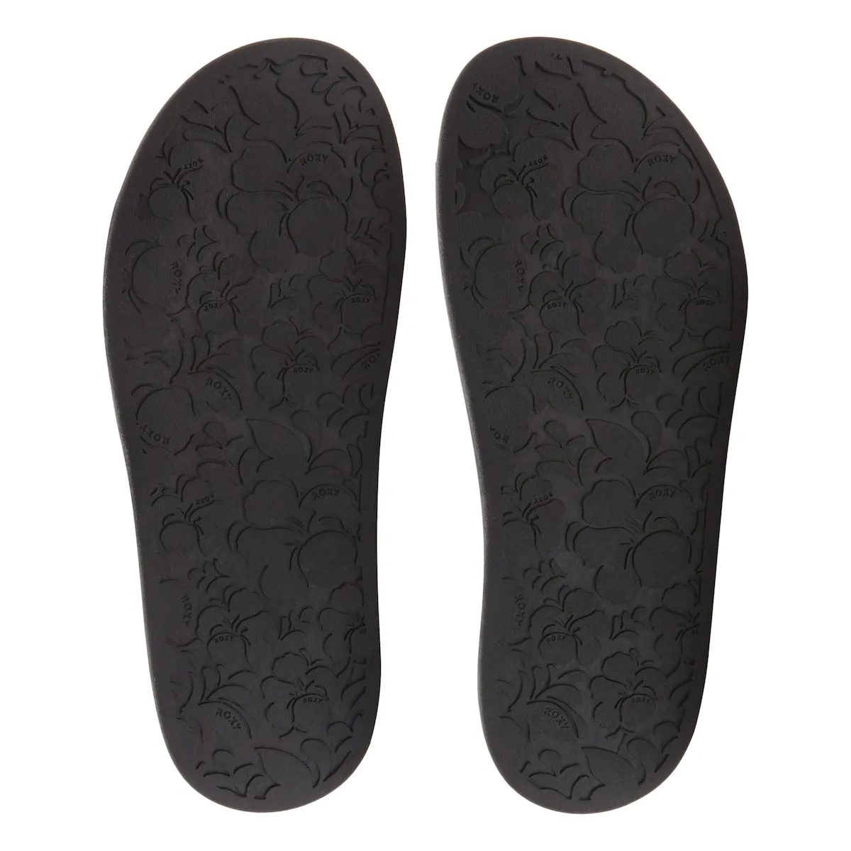 Женские шлепанцы. Особенности: Материал верха: перекрещивающиеся ремешки из трикотажного хлопка, Стелька: стелька из переработанной искусственной кожи с анатомической поддержкой, Подошва: подошва из переработанного TPR, Внутренний материал: трикотаж Джерси, Бренд: стелька с логотипом Roxy, выгравированным лазером, и подошва с классическими деталями Roxy.