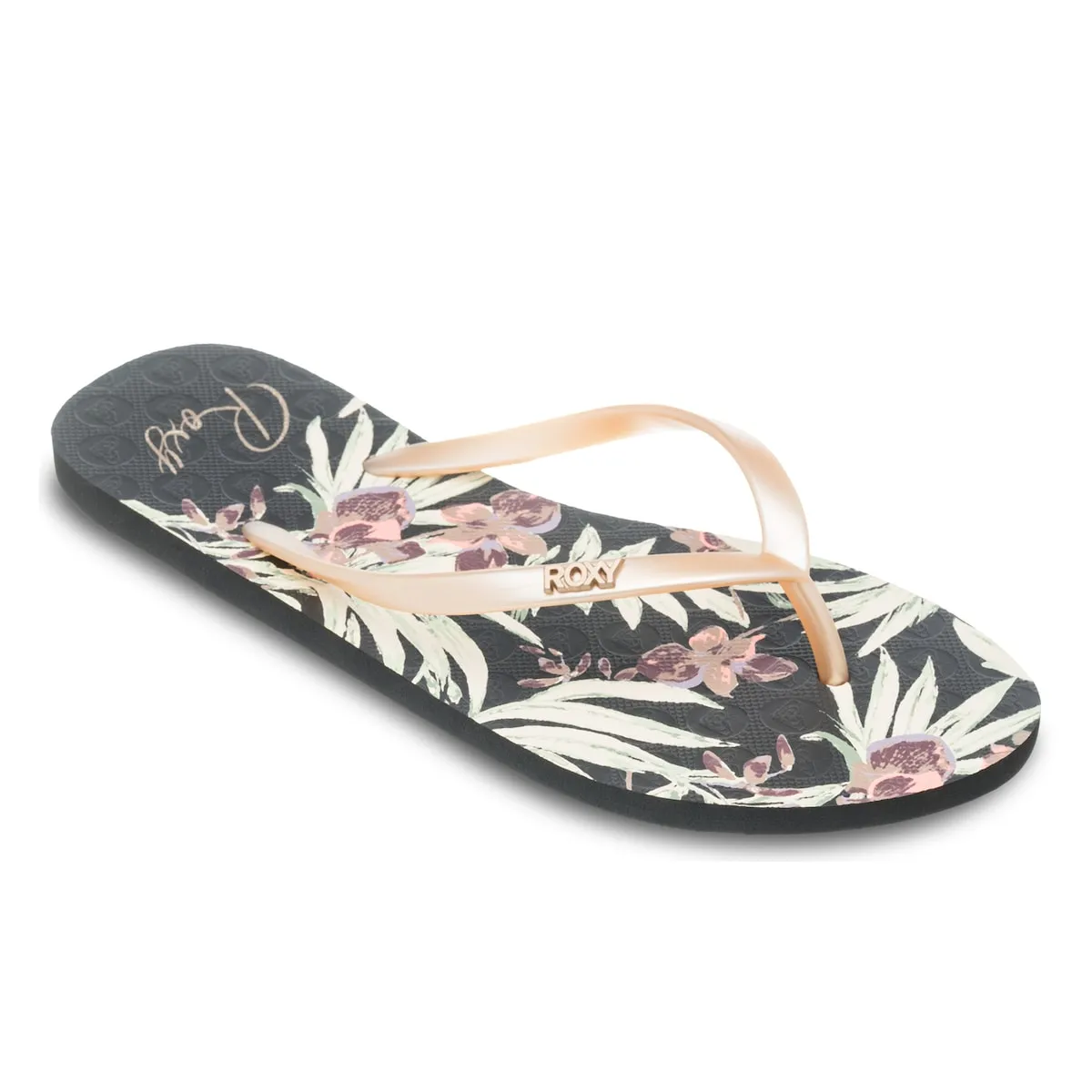 Женские сандалии. Особенности включают: Материал: без ПВХ, Верх: ремешки из TR с металлическим логотипом Roxy, Стелька: переработанный EVA с экологически безопасной печатью, Подошва: переработанная EVA с классическими деталями Roxy.