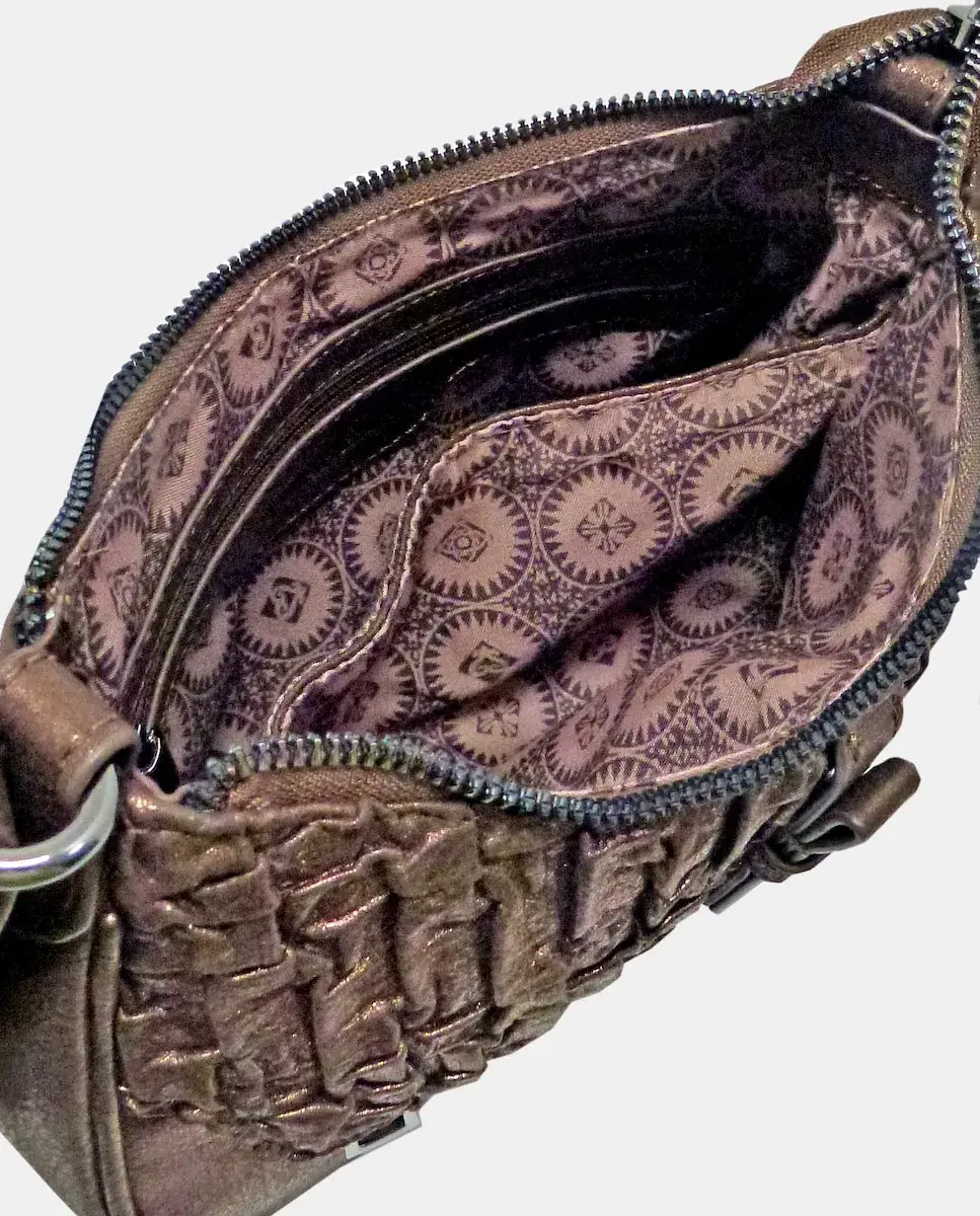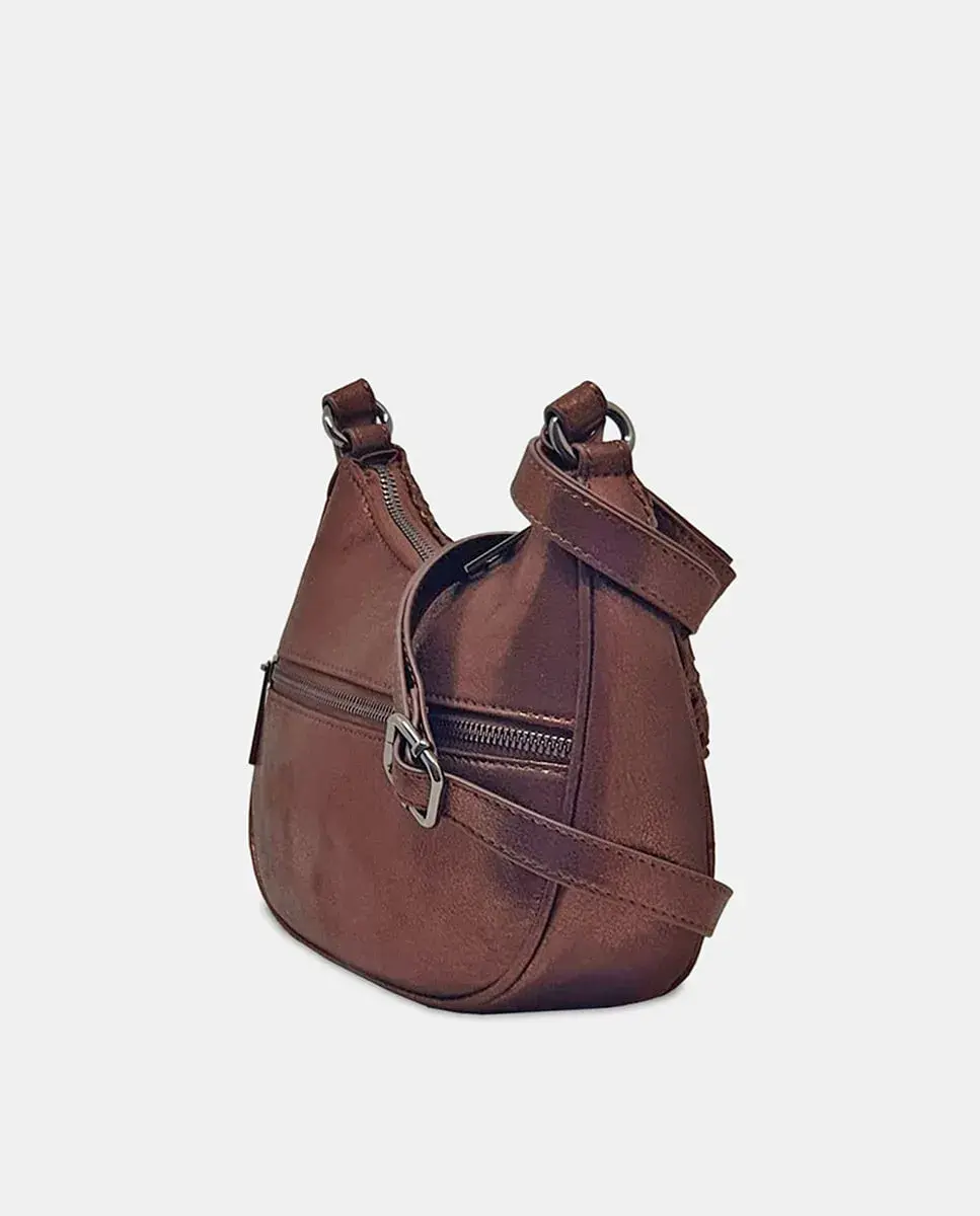 Сумка через плечо с регулируемой ручкой. Передний карман на молнии и задний карман для безопасности на молнии. Внутри имеется карман на молнии и два отделения для хранения таких предметов, как кошелек, мобильный телефон и т.д.