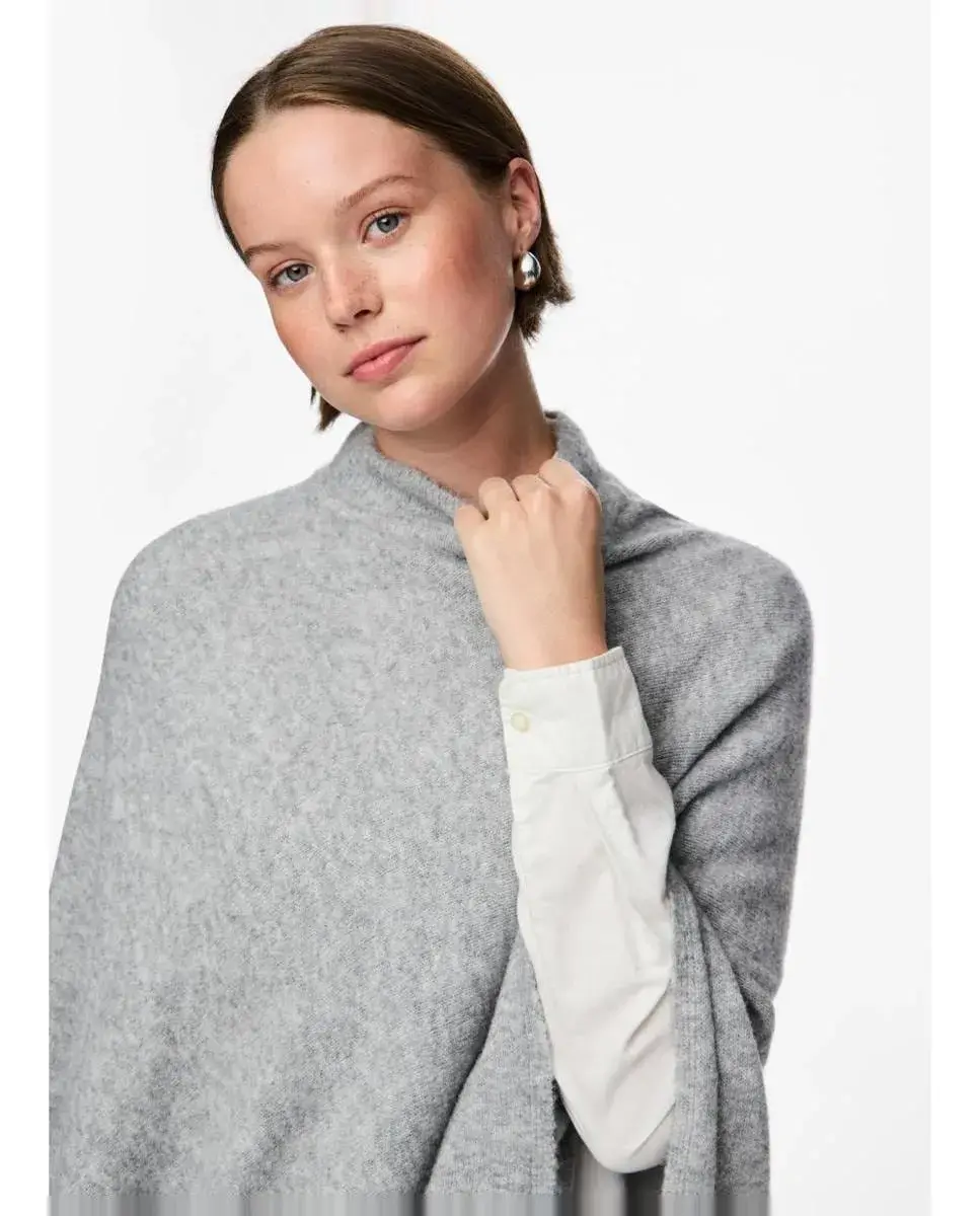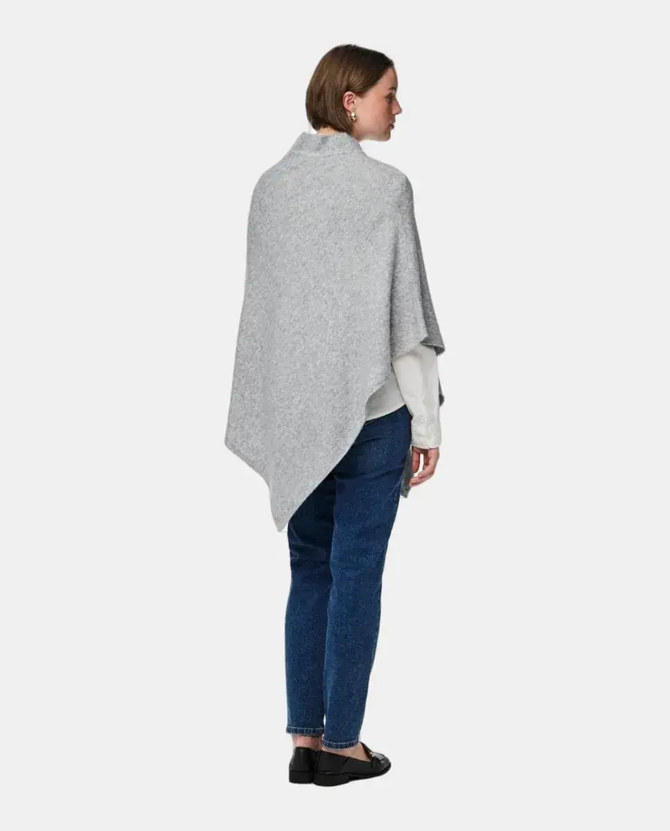 Закрытое пончо черного цвета с воротником из переработанного материала.