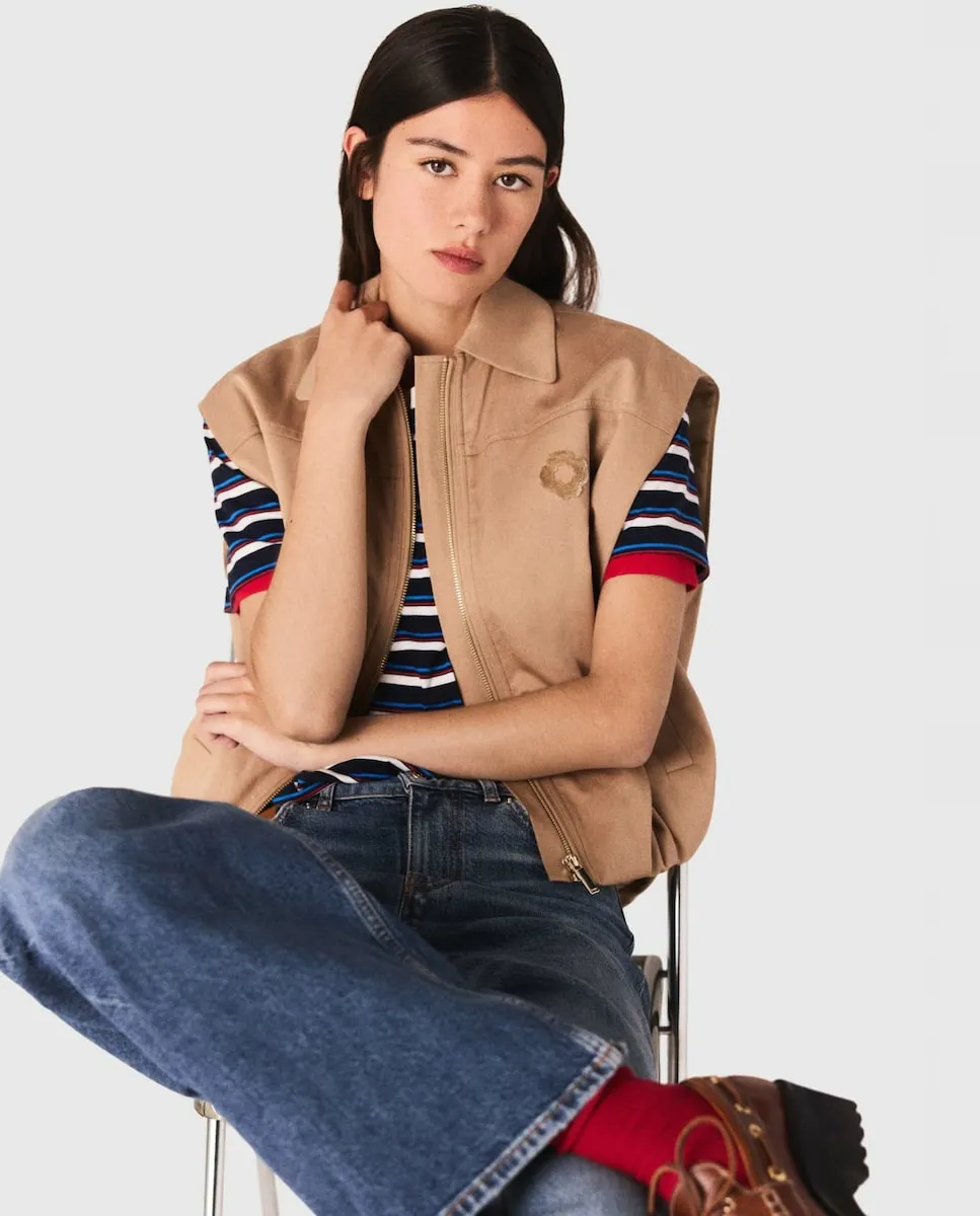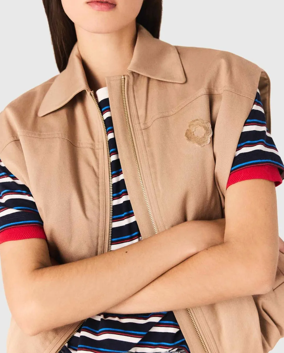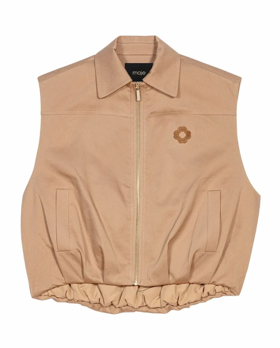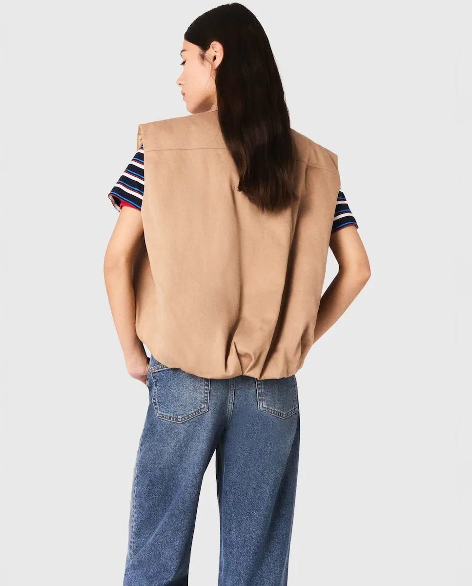 Укороченный жилет без рукавов. Эластичная талия для идеальной посадки. Высокий воротник. Между спортивным вдохновением и городскими линиями коллекция представляет собой удобные в повседневной носке вещи, не лишенные стиля. Этот жилет без рукавов подчеркивает талию за счет незаметной резинки и легко сочетается с любыми силуэтами. Можно носить поверх просторной рубашки или тонкого свитера для многослойного образа сезона.