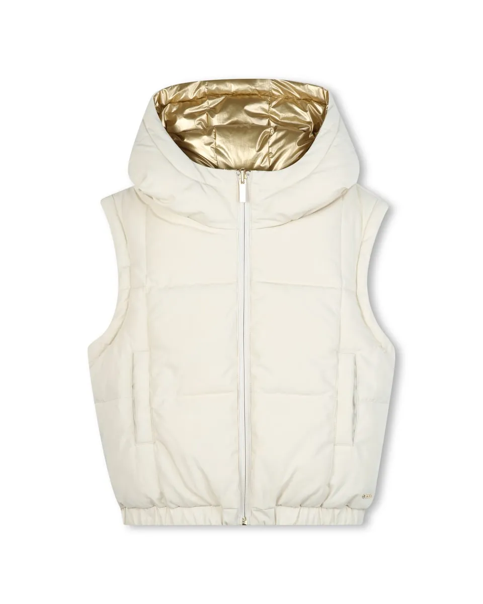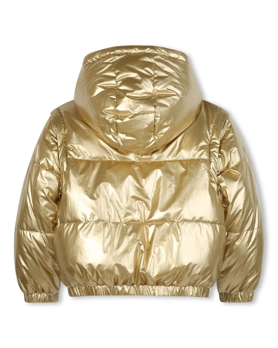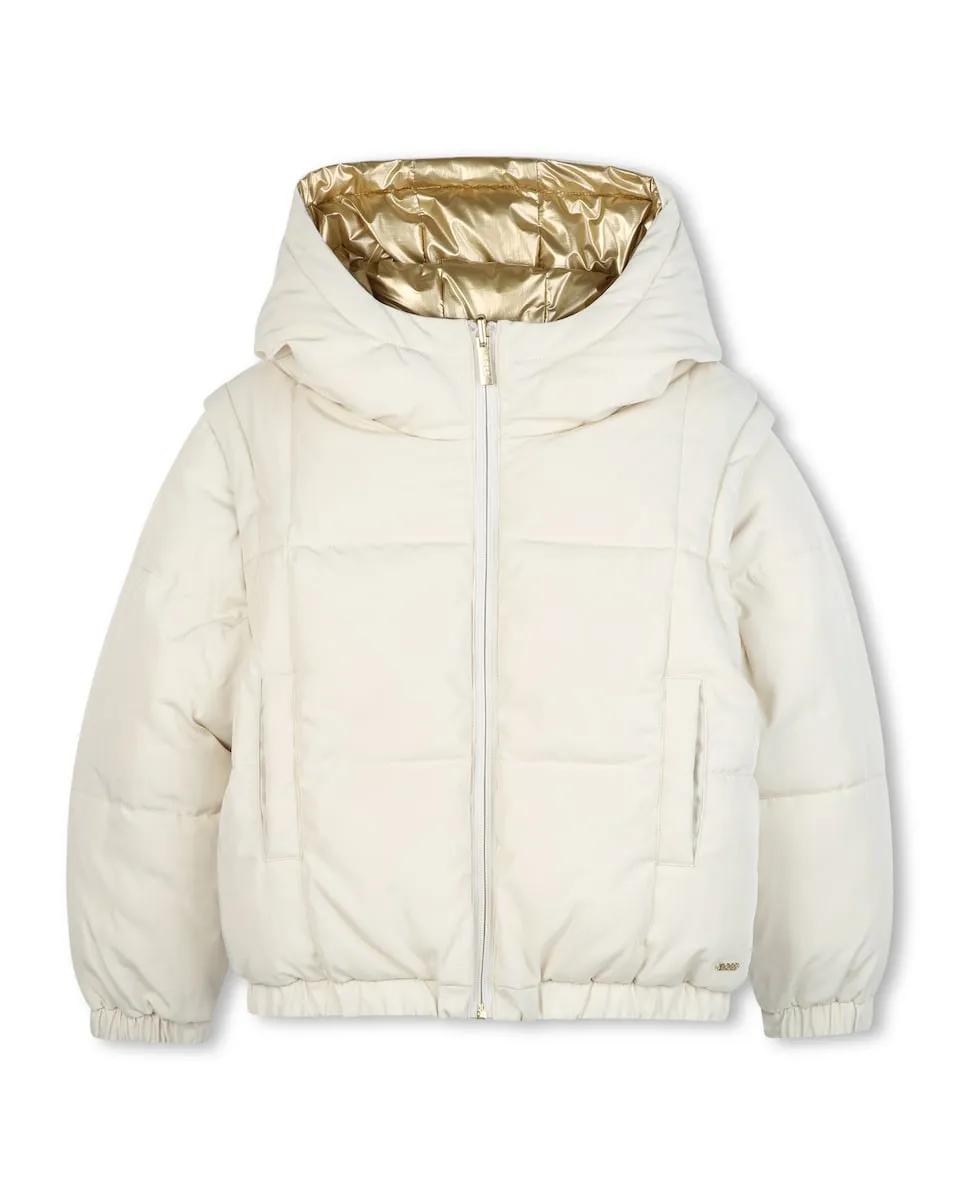 Детский двусторонний пуховик с капюшоном BOSS Kidswear, золотой