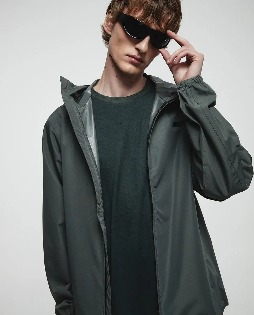 Дождевик с капюшоном. Застежка на передней стороне на молнии.