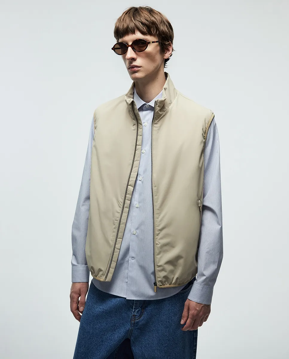 Легкий однотонный жилет с молнией спереди и карманами на застежке