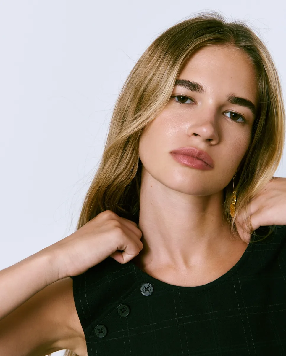 Клетчатый жилет с деталями в виде пуговиц.
