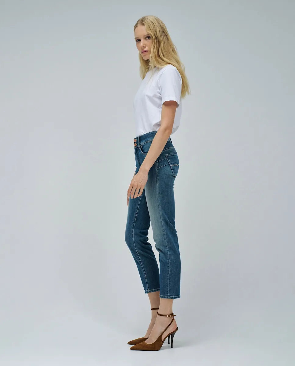 Джинсы Secret Push In с средней посадкой и двумя пуговицами оснащены внутренней панелью, специально разработанной для того, чтобы подчеркивать талию с максимальным комфортом. Две боковые складки обеспечивают идеальную посадку. Это доказательство того, что элегантность может быть и в джинсах.- Джинсы Secret- Синий цвет с эффектом потертости- Эффект Push In- Средняя посадка- Укороченный узкий крой- Передняя застежка на молнию и пуговицы- Пять карманов- С шлевками для ремняДля справки: рост модели 1,78 м, на ней размер 27. Джинсы Push In Secret создают формирующий эффект, делая силуэт более изящным.