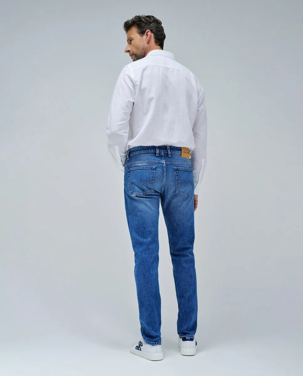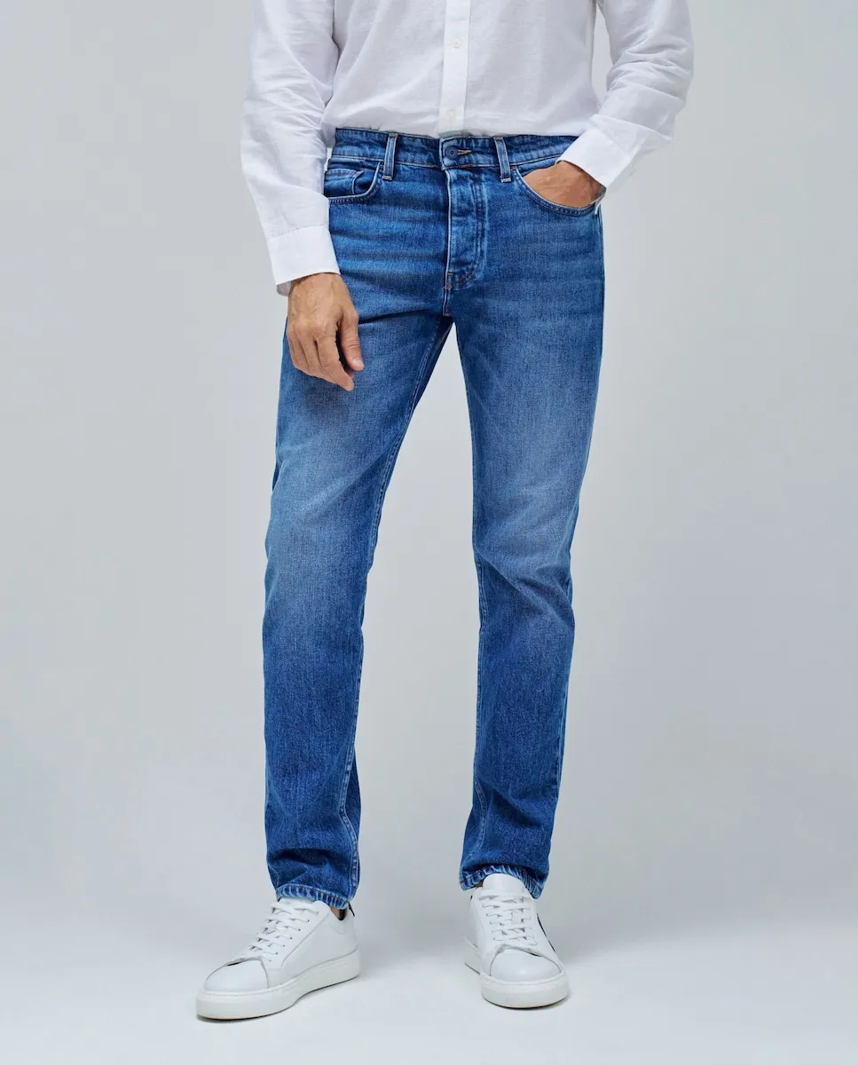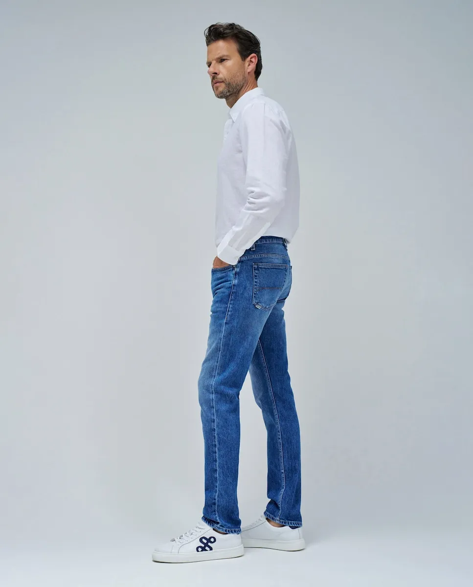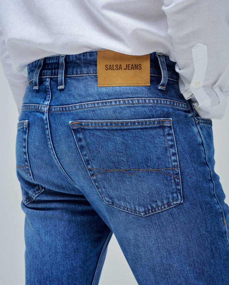 Эти джинсы слинг отличаются современным дизайном, который обеспечит вам оптимальный баланс между комфортом и стилем. С передней застежкой на пуговицы, эти брюки оснащены пятью карманами и шлевками для ремня. Откройте для себя вечный стиль и комфорт наших джинсов.- Джинсы slim fit- Синий цвет- Средняя посадка- Застежка на пуговицы- Узкие штанины- Пять карманов- Со шлевками для ремняДля справки, модель ростом 1,86 м и носит размер 32.