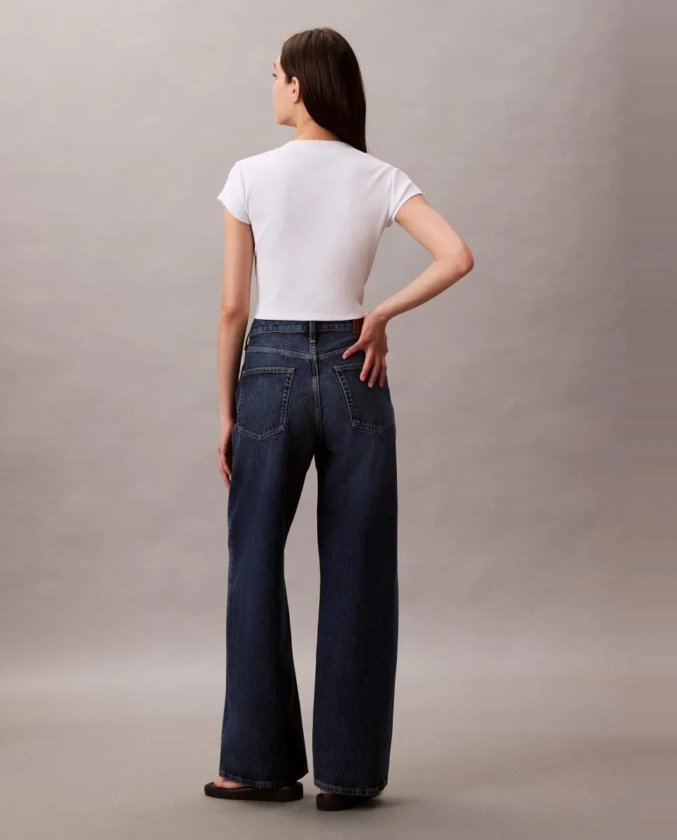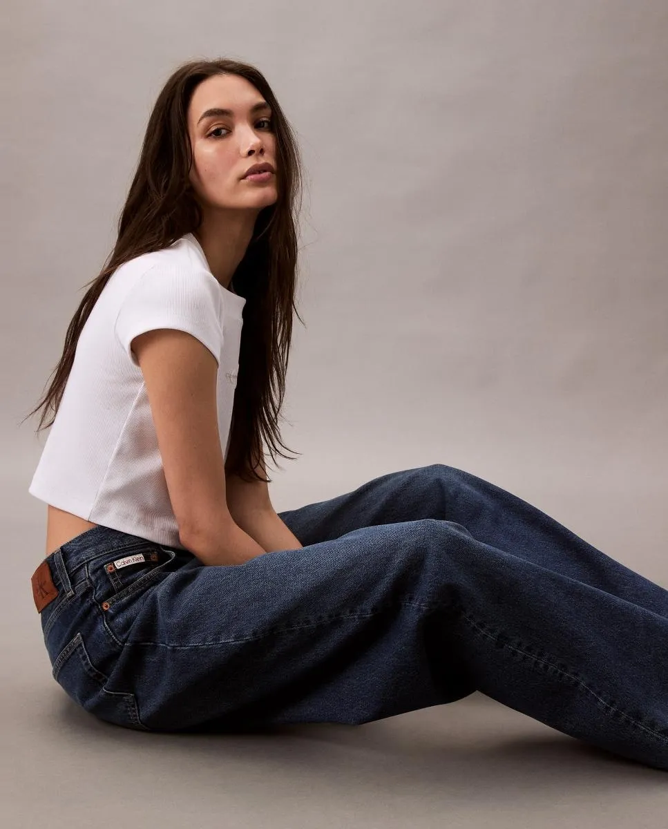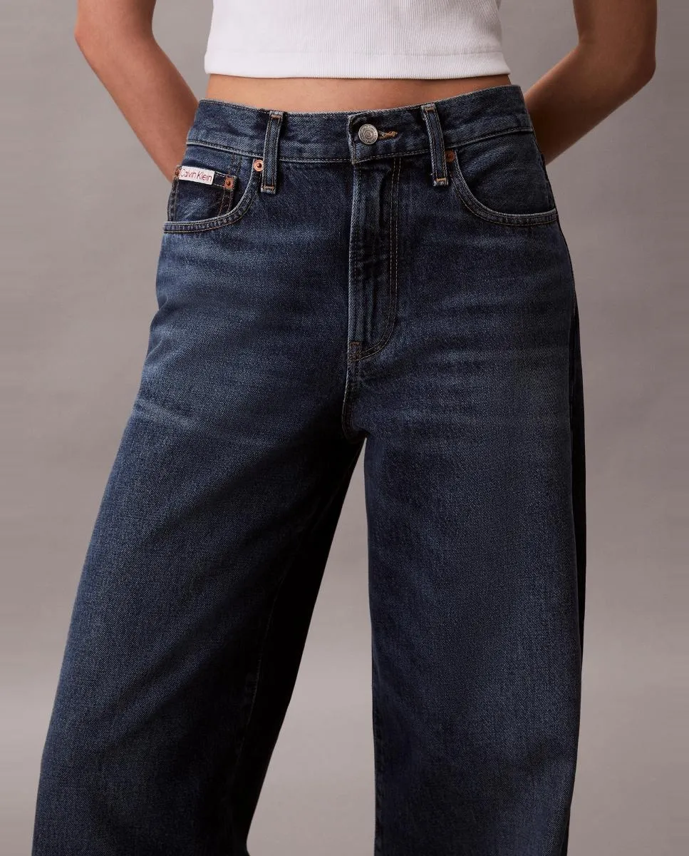 Женские джинсы широкого кроя, выполненные из 100% хлопка, с логотипом CK на передней и задней части.