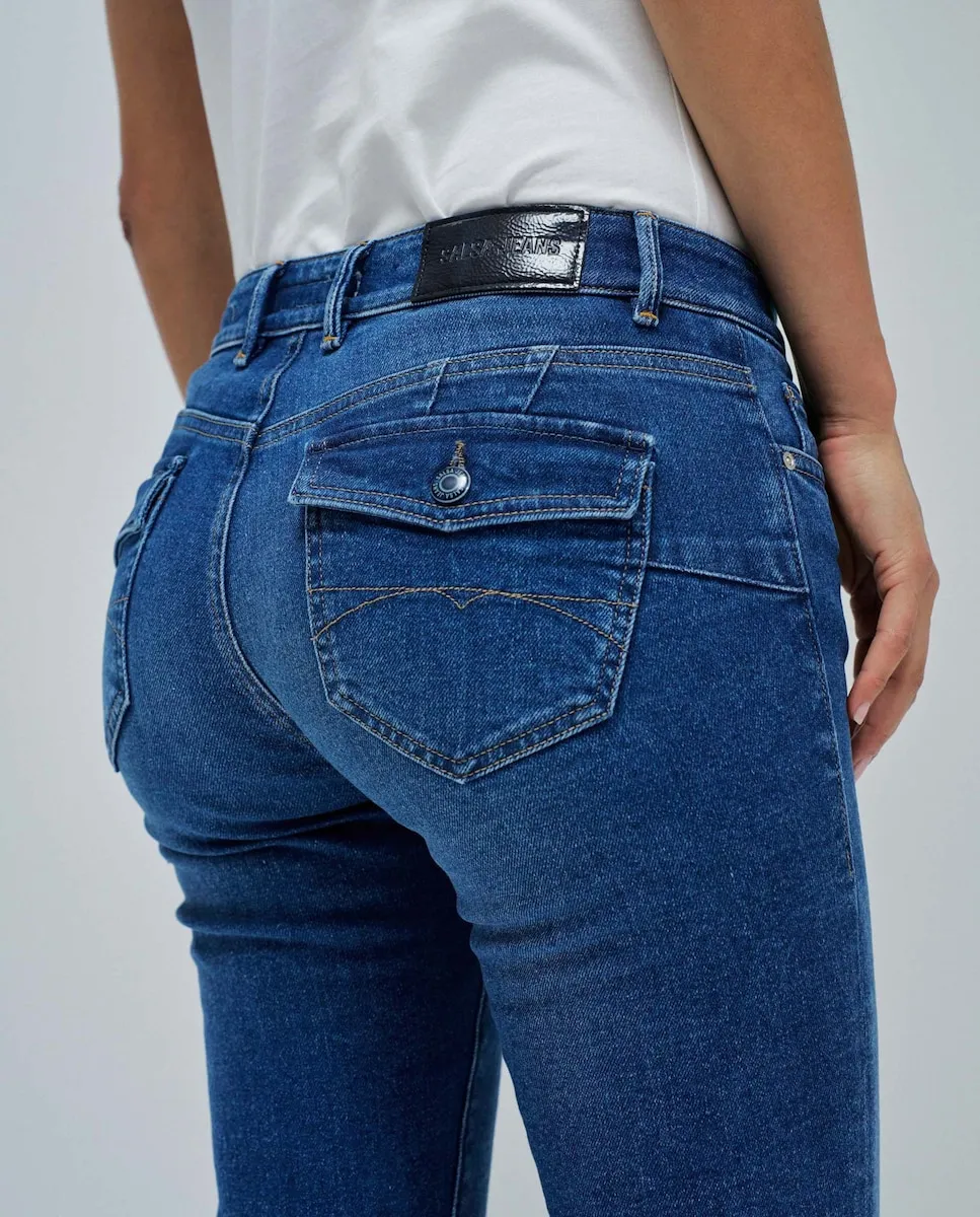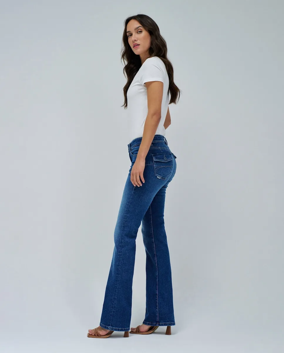 Наши культовые джинсы Wonder Push Up с низкой посадкой подчеркивают самые красивые изгибы вашего тела. Они имеют формирующую чашку, созданную с помощью карманов, швов и задних вытачек, которые придают больший объем. Наши джинсы всегда будут ответом на то, что вы хотите почувствовать. - Джинсы Wonder - Эффект Push Up - Синий цвет - Клеш от бедра - Низкая посадка - Передняя застежка на молнию и пуговицу - Пять карманов - С петлями для ремня Для справки: рост модели 1,74 м, она носит размер 27. Джинсы Push Up Wonder идеально подчеркивают ваши изгибы и усиливают силуэт.