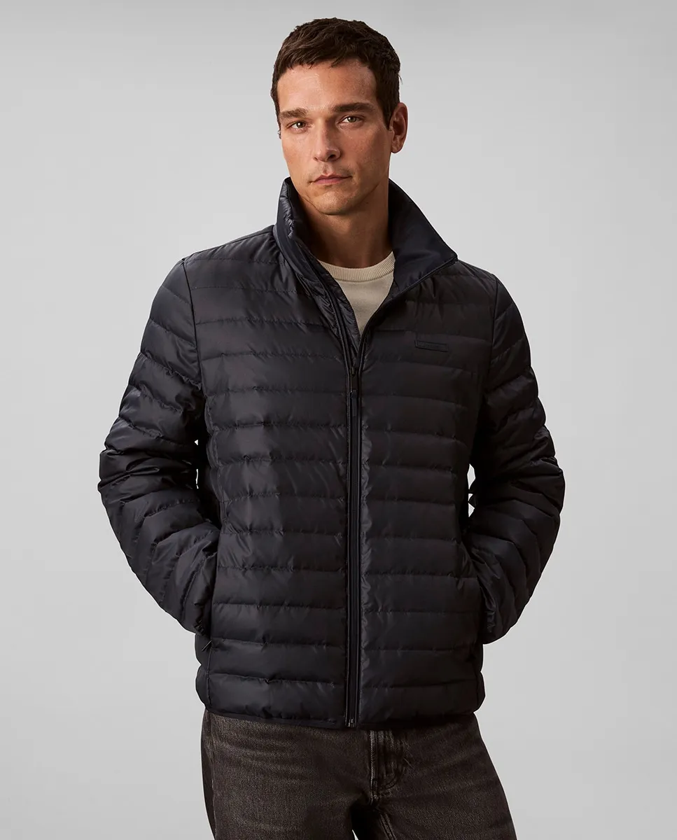 Мужская стеганая куртка Calvin Klein, выполненная из переработанного нейлона и полиамида, с застежкой-молнией и боковыми карманами.