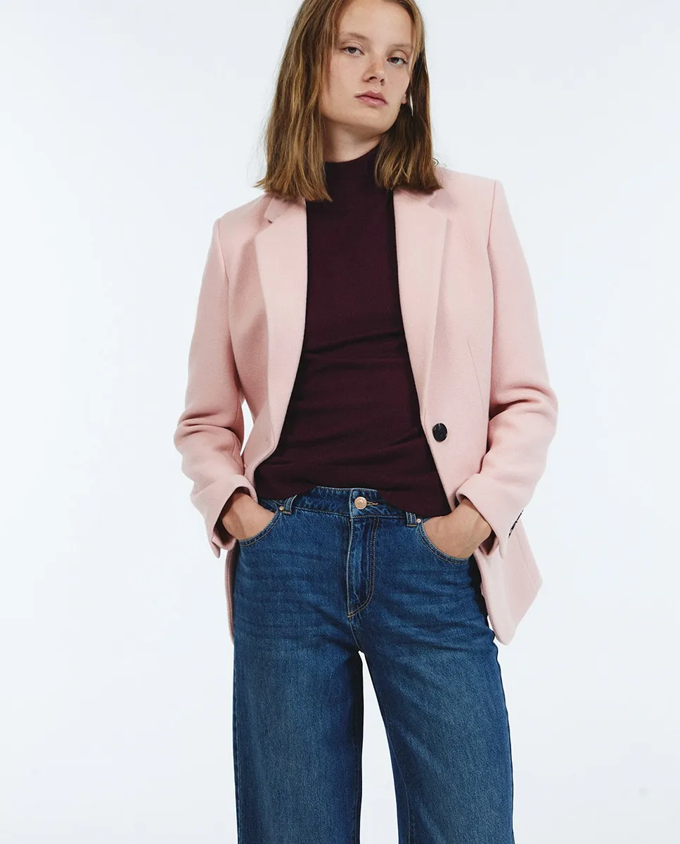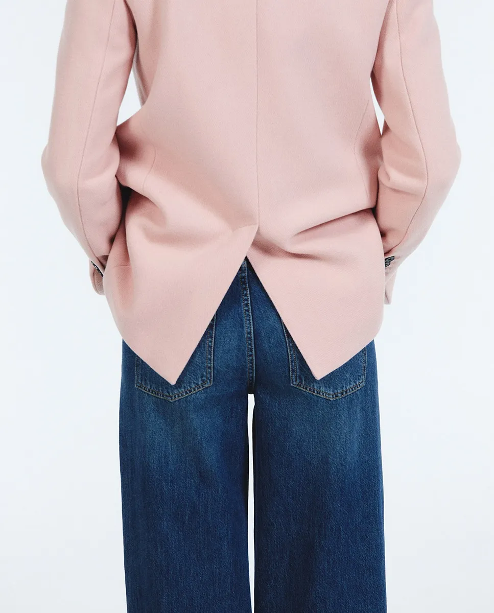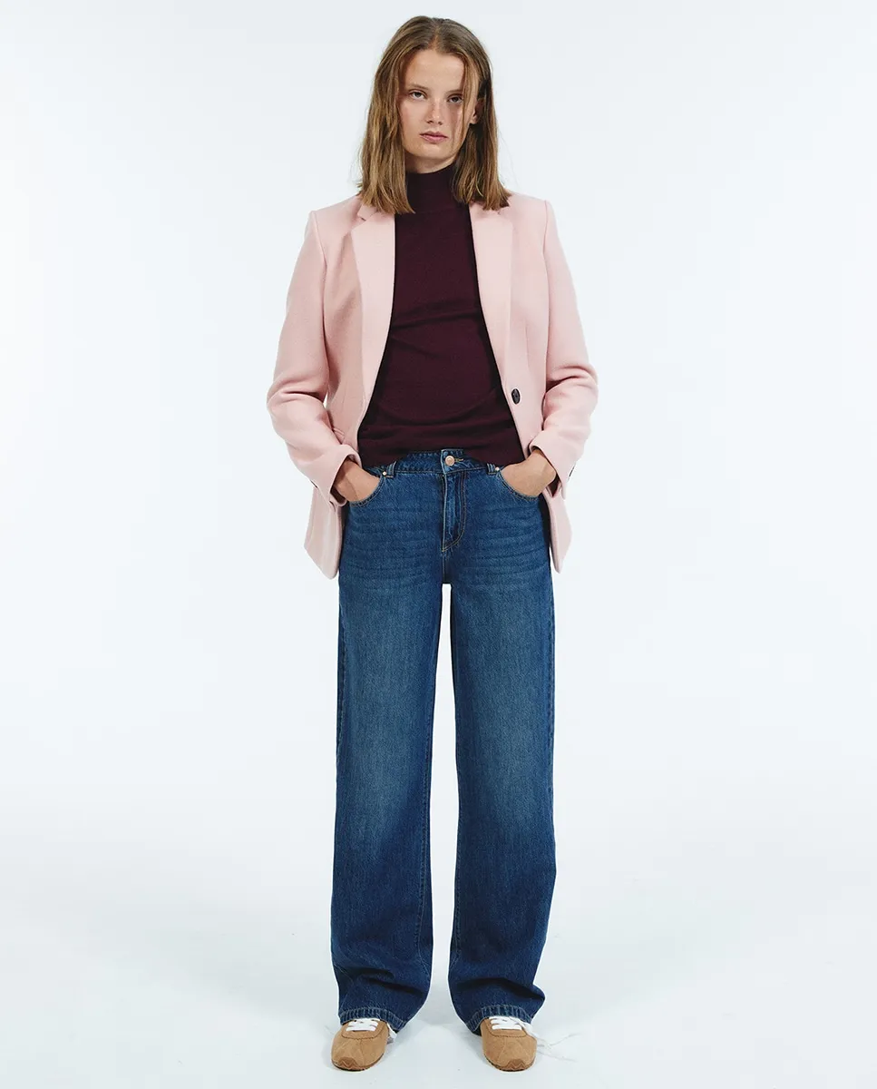 Джинсы свободного прямого кроя. Карманы и застежка на потайной молнии и пуговице