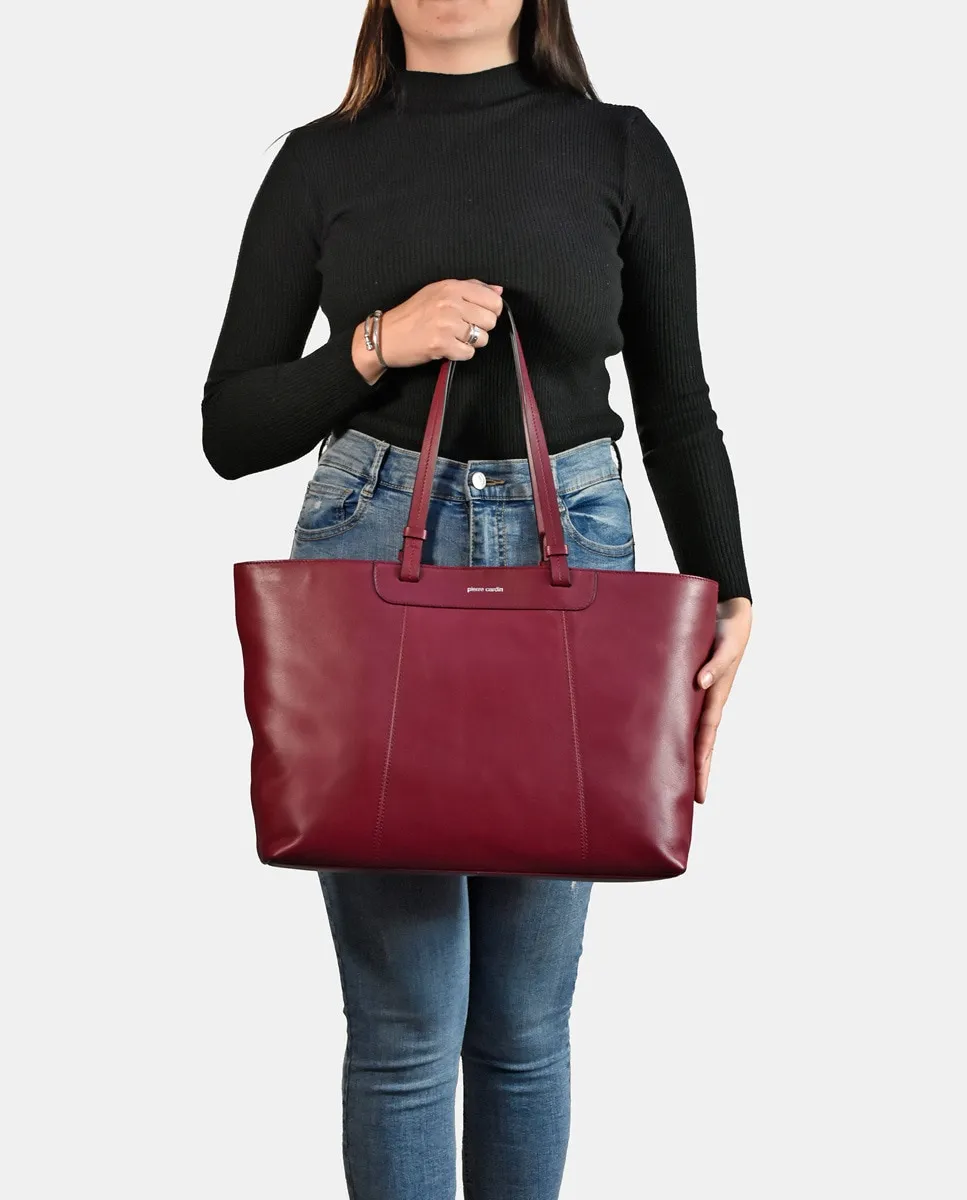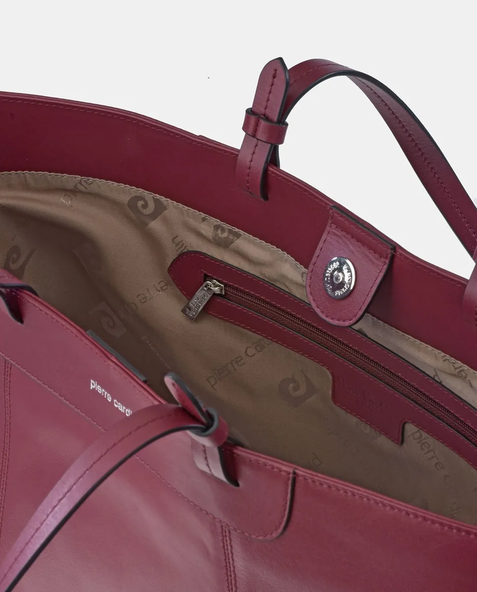 Женская сумка для покупок Pierre Cradin, выполненная из коровьей кожи с двумя длинными ручками. Внутренняя часть выстлана текстильным материалом, с 3 карманами, один из которых на молнии. Закрывается на магнитную кнопку.