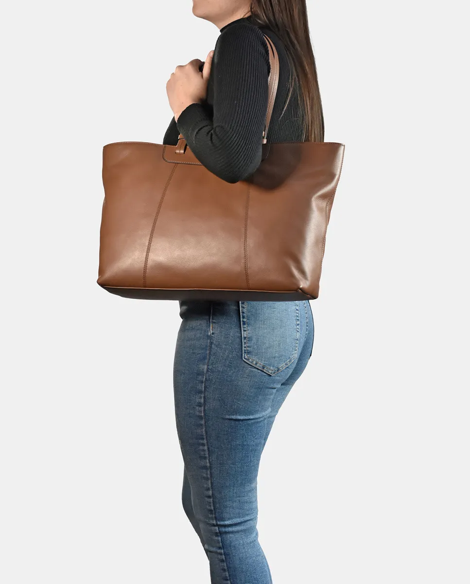 Черная кожаная сумка-шоппер Pierre Cardin