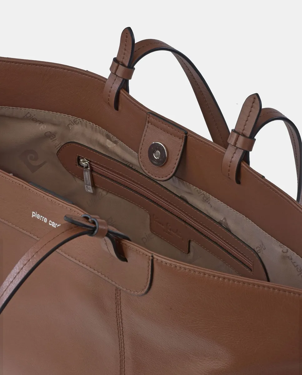 Женская сумка для покупок Pierre Cradin, выполненная из коровьей кожи с двумя длинными ручками. Внутренняя часть выстлана текстильным материалом, с 3 карманами, один из которых на молнии. Закрывается на магнитную кнопку.