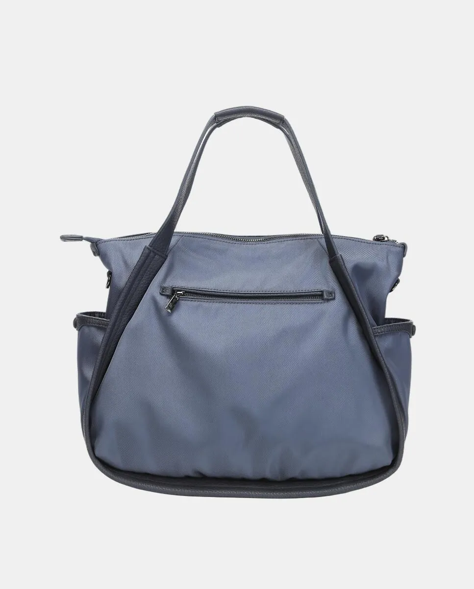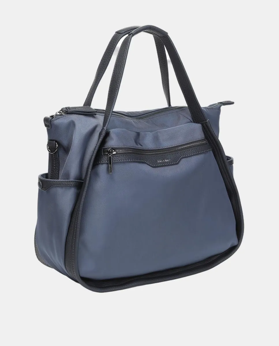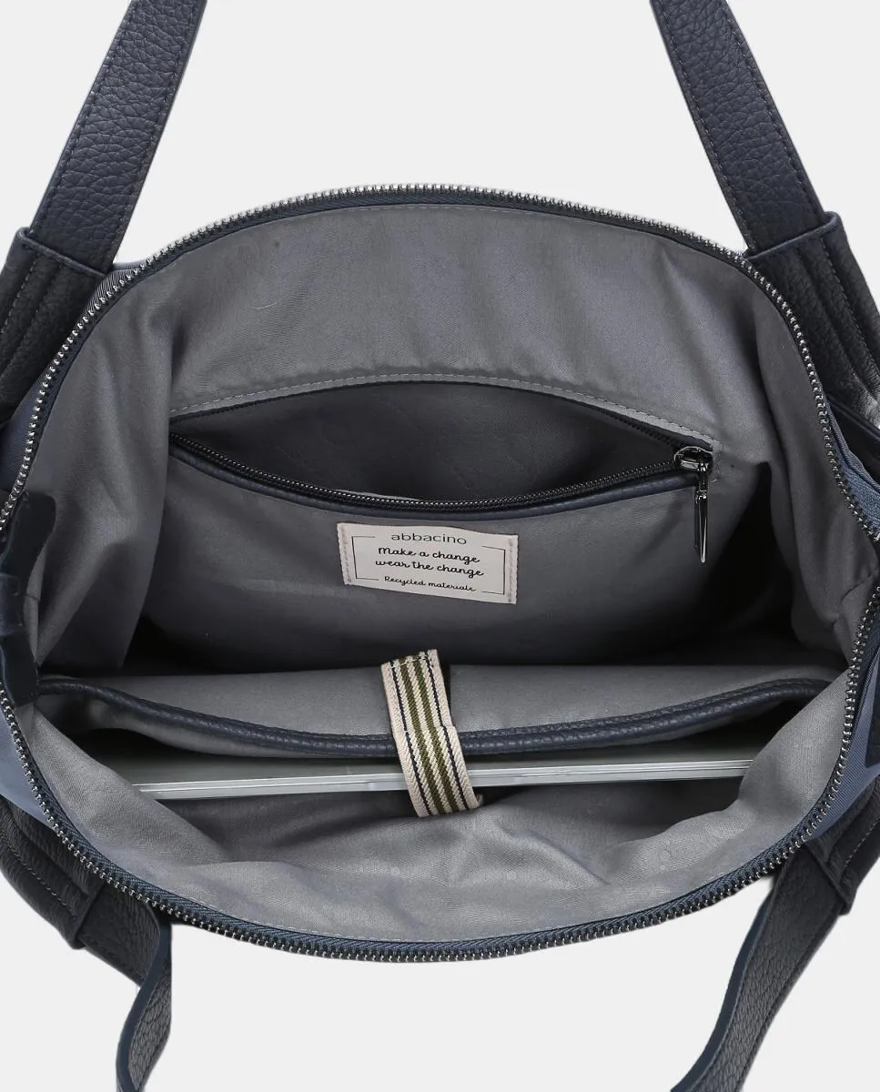 Женская сумка-тоут на плечо из переработанной ткани с слегка атласной отделкой, практичным и функциональным дизайном в спортивно-повседневном стиле, идеальна для любого случая - от офиса до спортзала. Оснащена внутренними органайзерами, верхней застежкой на молнии, сочетает двойную ручку для плеча с регулируемым и съемным плечевым ремнем. Кроме того, имеет внутреннюю подкладку, внешние карманы и логотип Abbacino на передней стороне небольшого нашего.