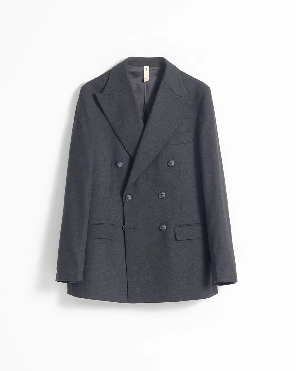 Этот темно-серый твидовый пиджак сочетает классическую структуру с современными деталями, такими как конструкция без плечевых накладок, металлические пуговицы и приталенный силуэт. Идеально подходит для комбинирования с классическими брюками или джинсами, создавая образ целиком с характером и изысканностью.