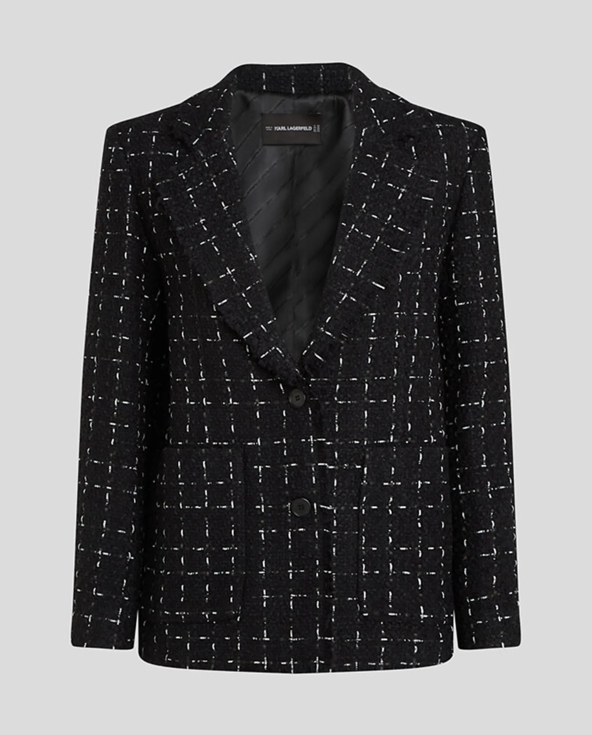 Подними свой стиль с этим изысканным пиджаком от Karl Lagerfeld, мастерски выполненным из роскошной ткани букле.