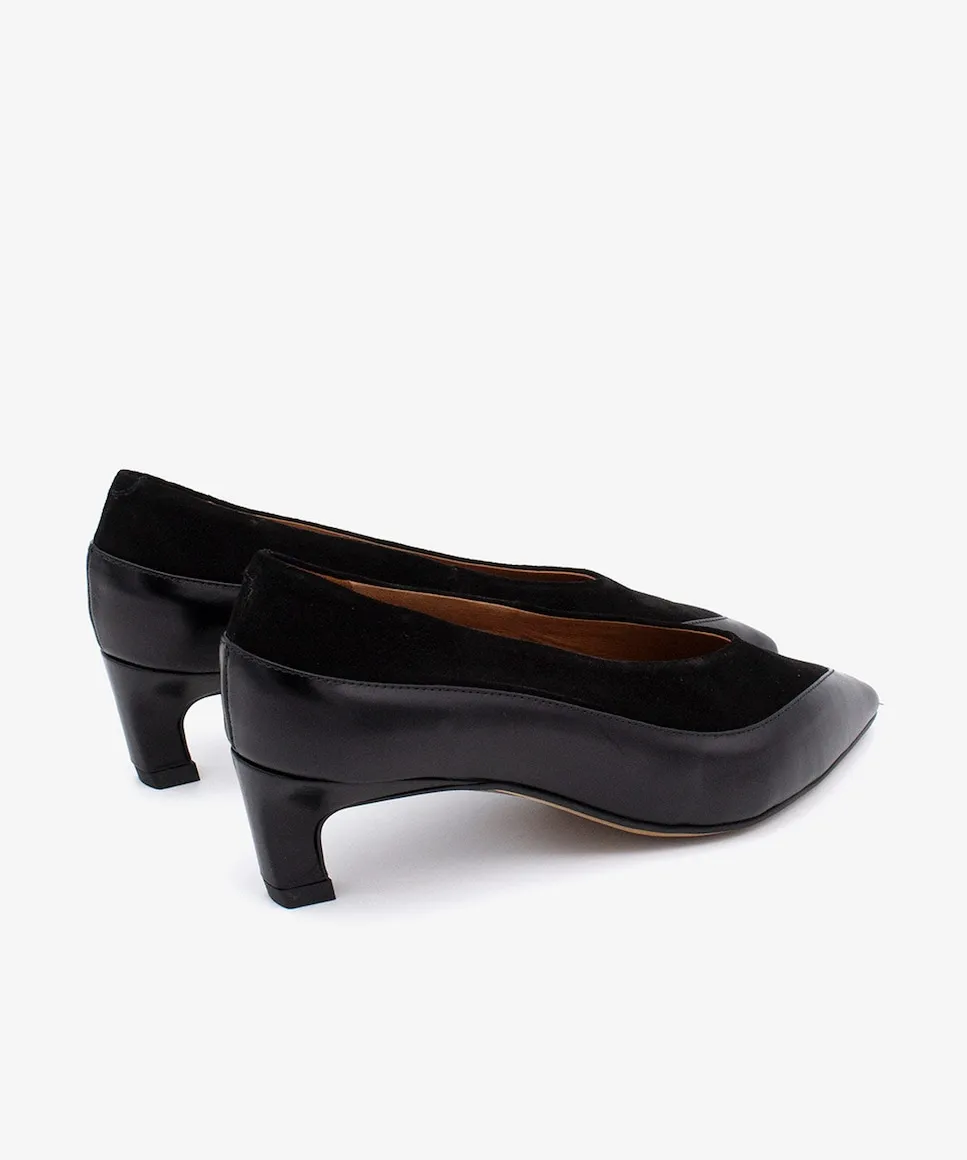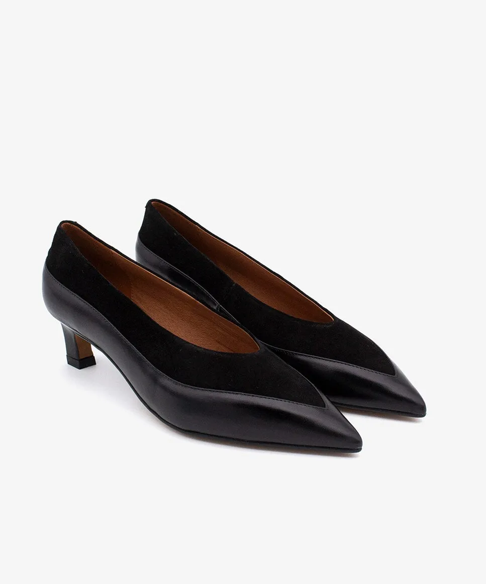 Модель CHERIE - это женская закрытая туфля с заостренным носком и невысоким каблуком 4 см, которая сочетает в себе комфорт и стиль. Ее дизайн с различными кожаными вставками придает современный и элегантный вид, идеально подходящий для повседневного ношения или для дополнения более изысканных образов.