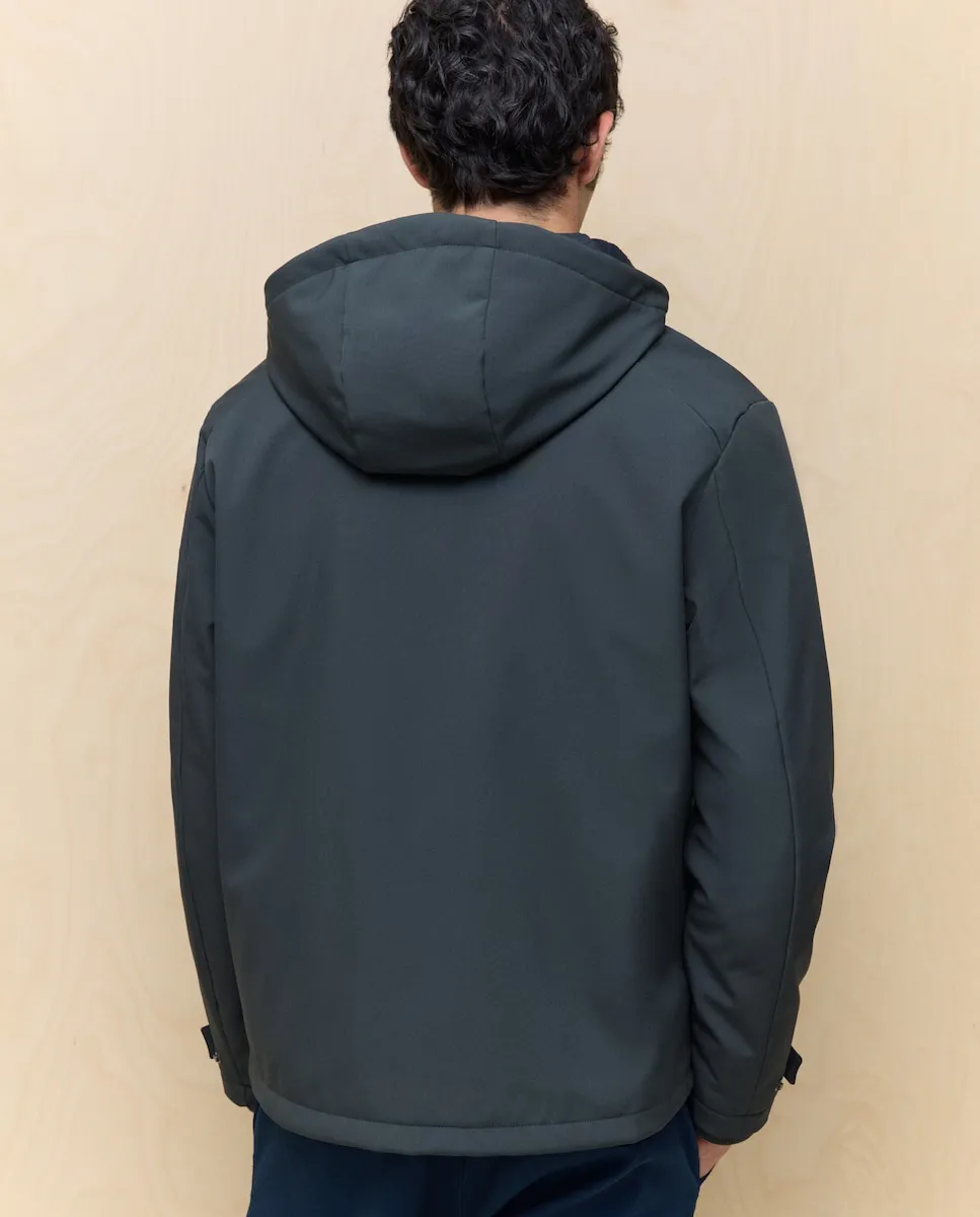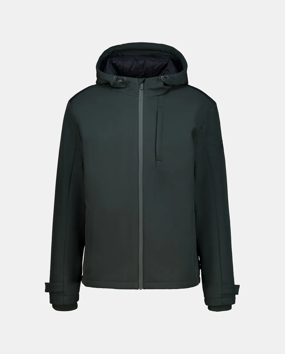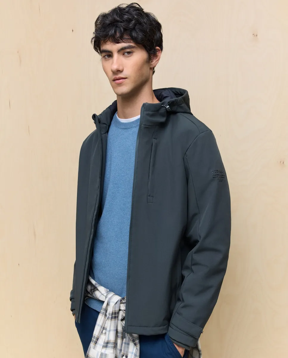 Куртка с капюшоном, водоотталкивающая. Ткань с эластичным эффектом для большего комфорта. Имеет три наружных кармана и один внутренний.