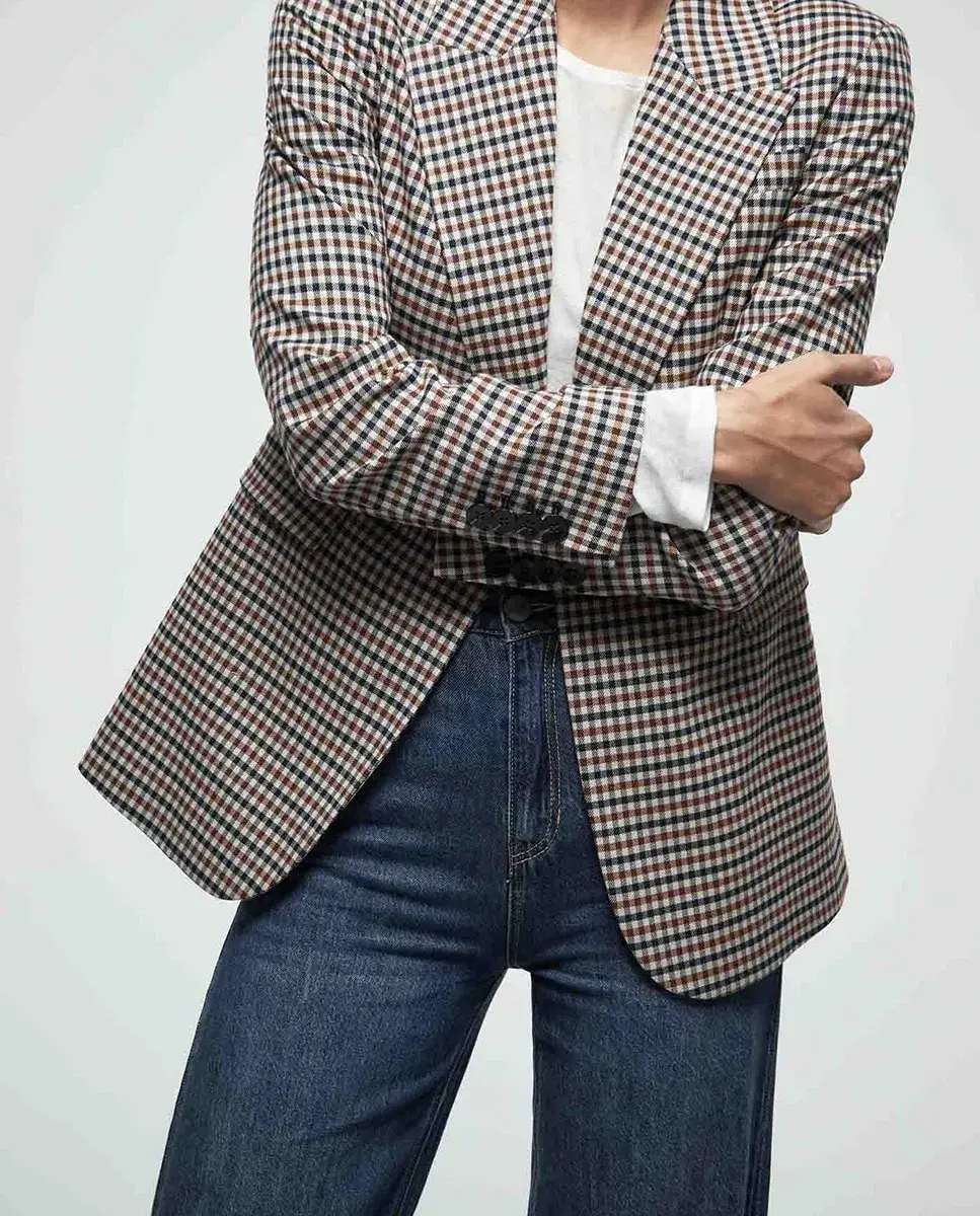 Клетчатый блейзер с лацканами. Передняя застежка на пуговицу