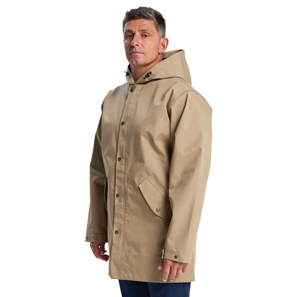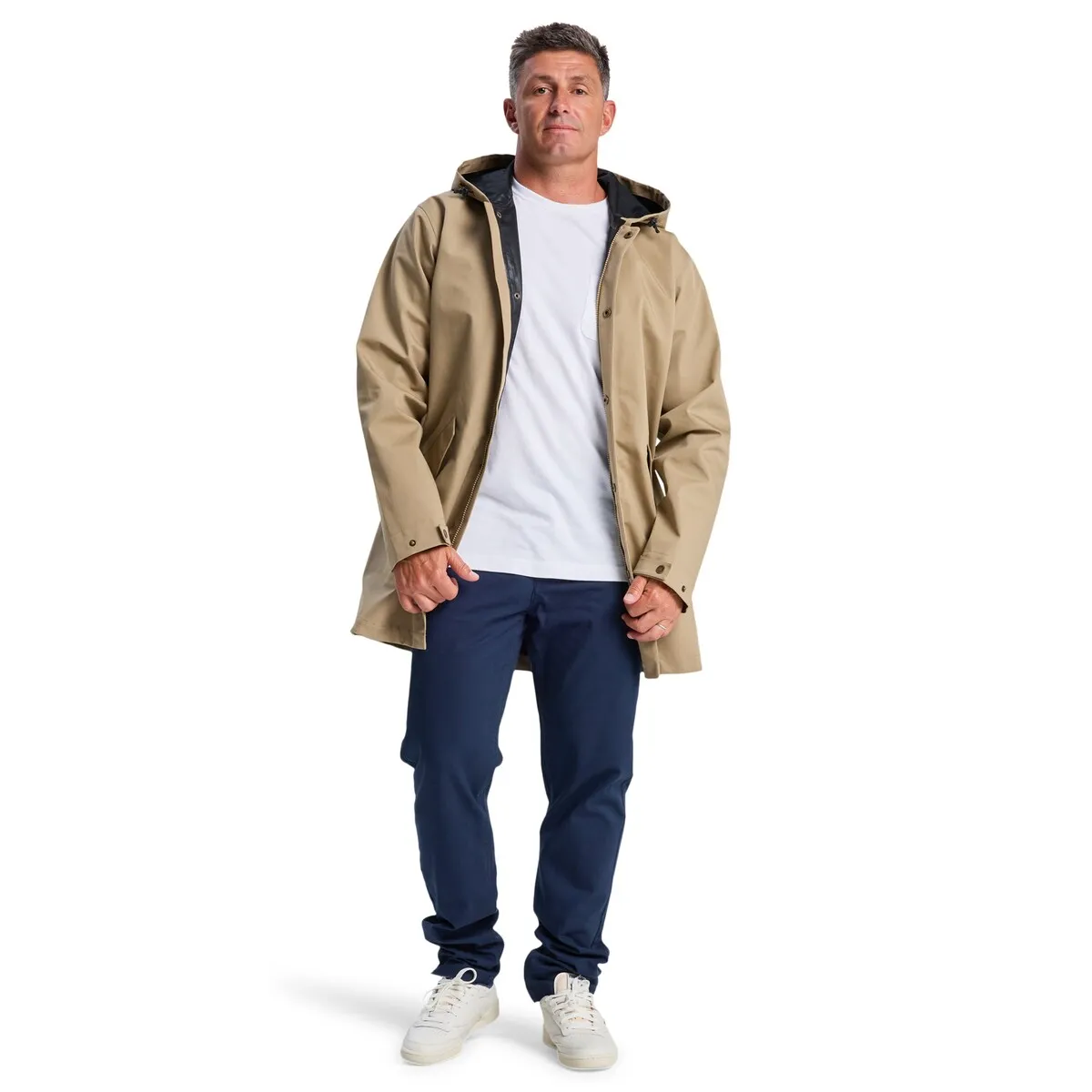Водонепроницаемая мужская куртка. Особенности включают: Подходит для: городской приключений, ПРЕИМУЩЕСТВА, Технология DryFlight 10K, хорошая водонепроницаемость для защиты от ветра и воды., Made Better, Долговременная водоотталкивающая обработка без ПФОС, Ткань: переработанный полиэстер, хлопок 250 г/м², ОСОБЕННОСТИ, Крой: обычный крой, Швы: полностью проклеенные внутренние швы, Подкладка: без подкладки, Капюшон: несъемный капюшон с регулируемым шнурком, Молнии: фронтальная застежка-молния под планкой с кнопками, Карманы: два диагональных кармана для рук с клапанами.