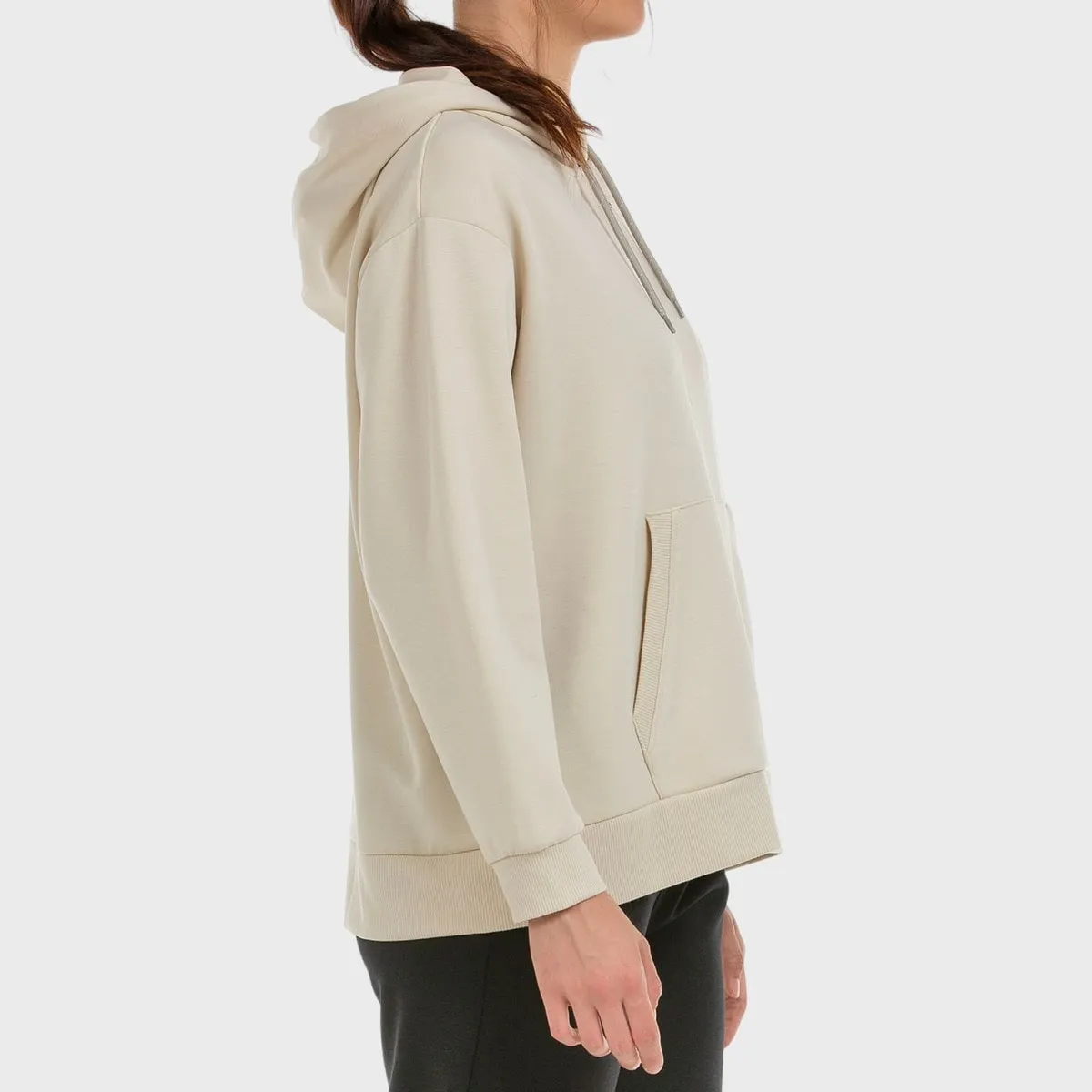 Свободная толстовка из нашей линии puresport. Сшита из эластичного полиэстерового и вискозного трикотажа интерлок, что обеспечивает изделию очень комфортное ощущение. Это худи с капюшоном, с центральной застежкой-молнией, карманами кенгуру и трикотажными вставками на карманах и манжетах. Украшена логотипом на груди.