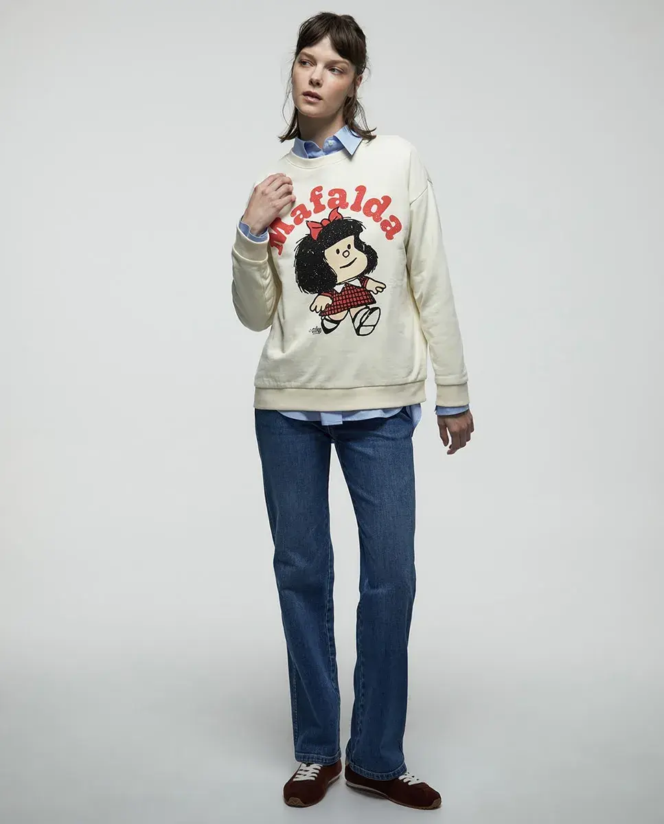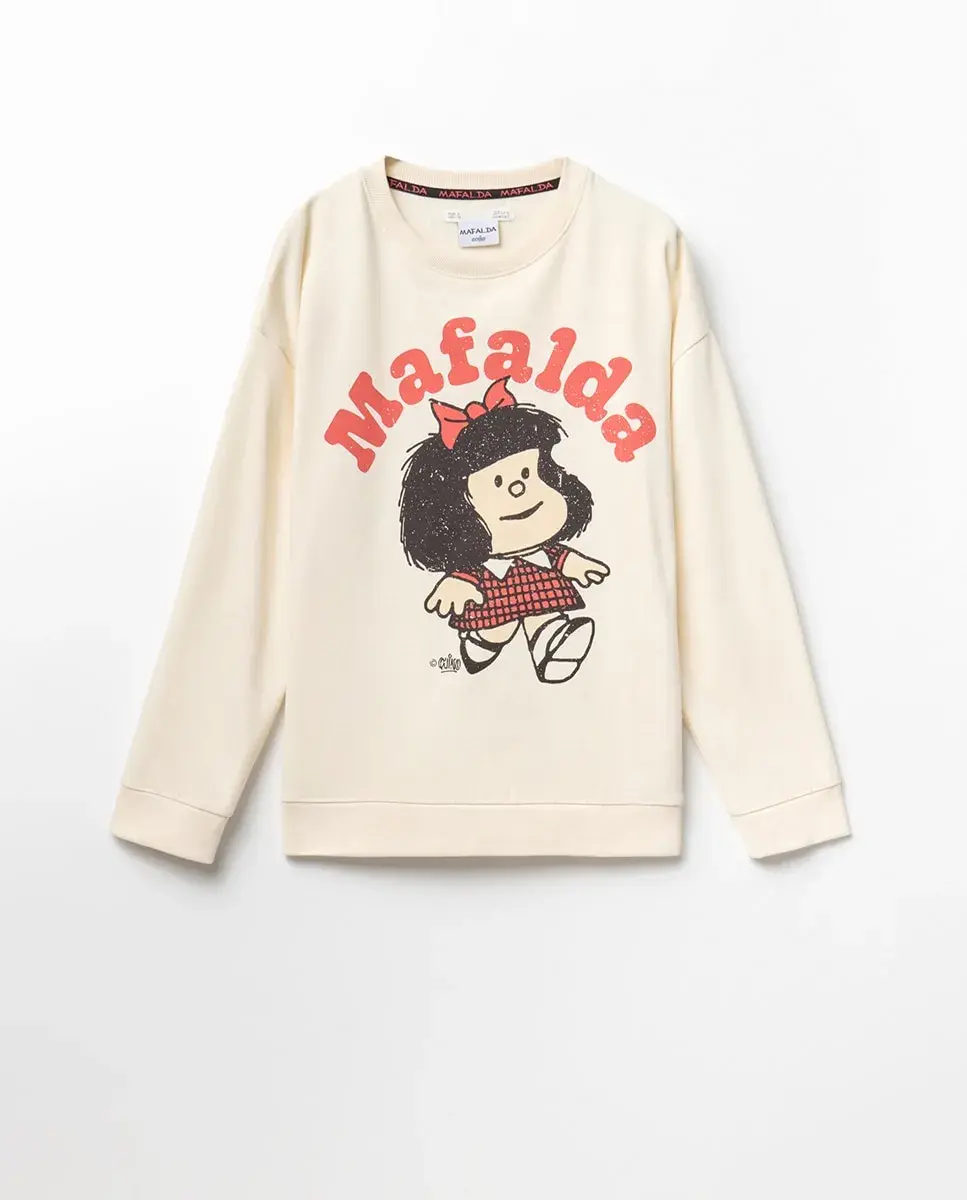 Свитшот с лицензией Mafalda с длинными рукавами и круглый вырез. Детали с резинкой на манжетах, воротнике и подоле.