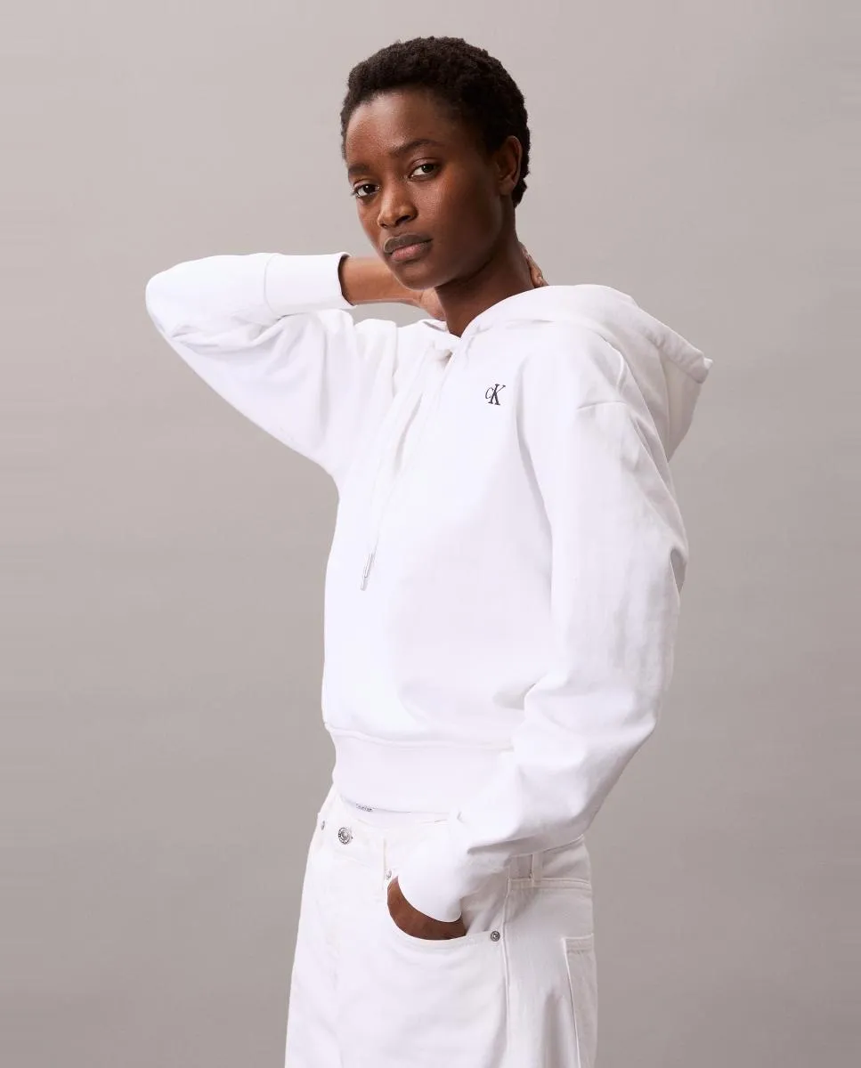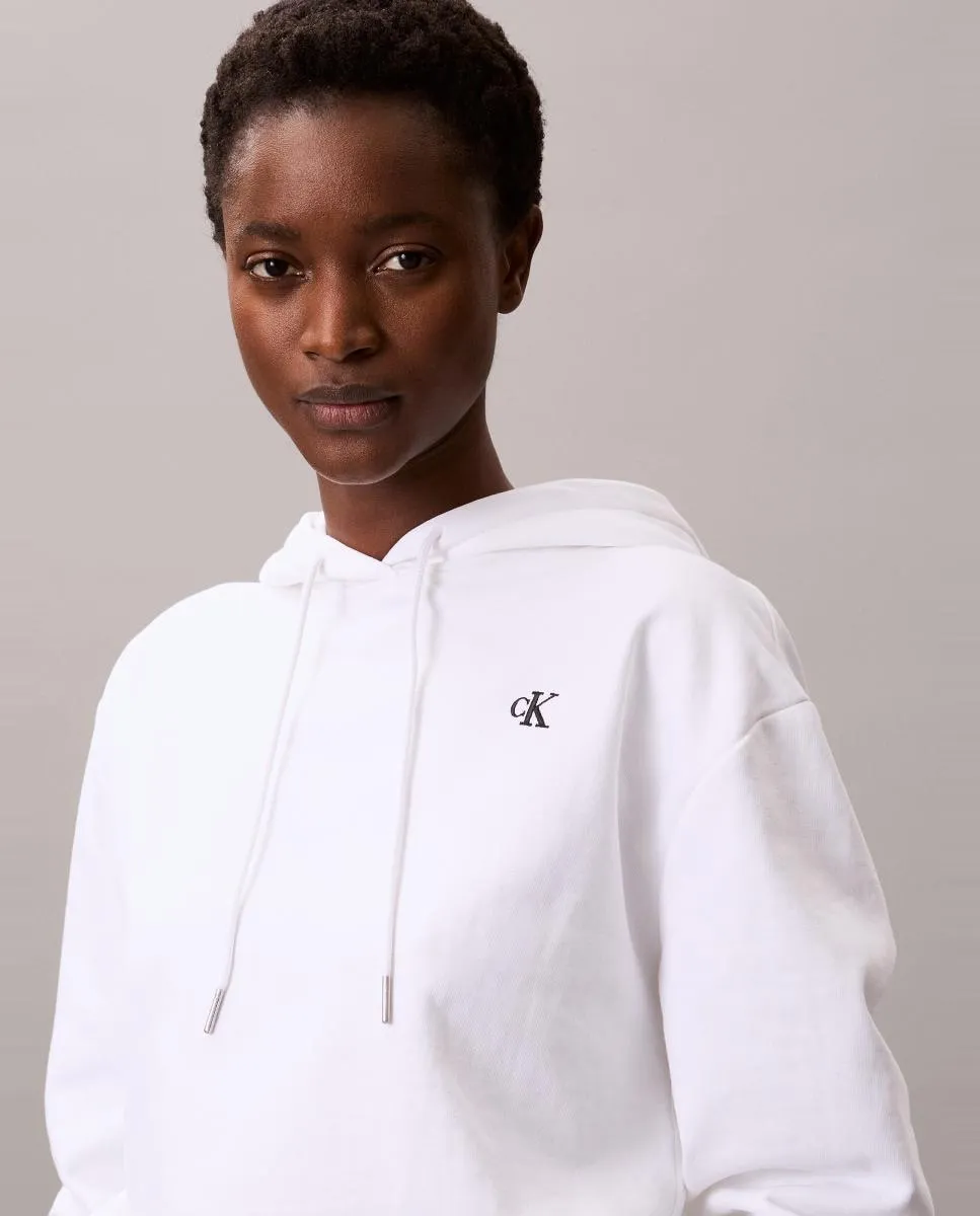 Женская толстовка, выполненная из хлопка и эластана, с капюшоном и логотипом-монограммой CK на груди.