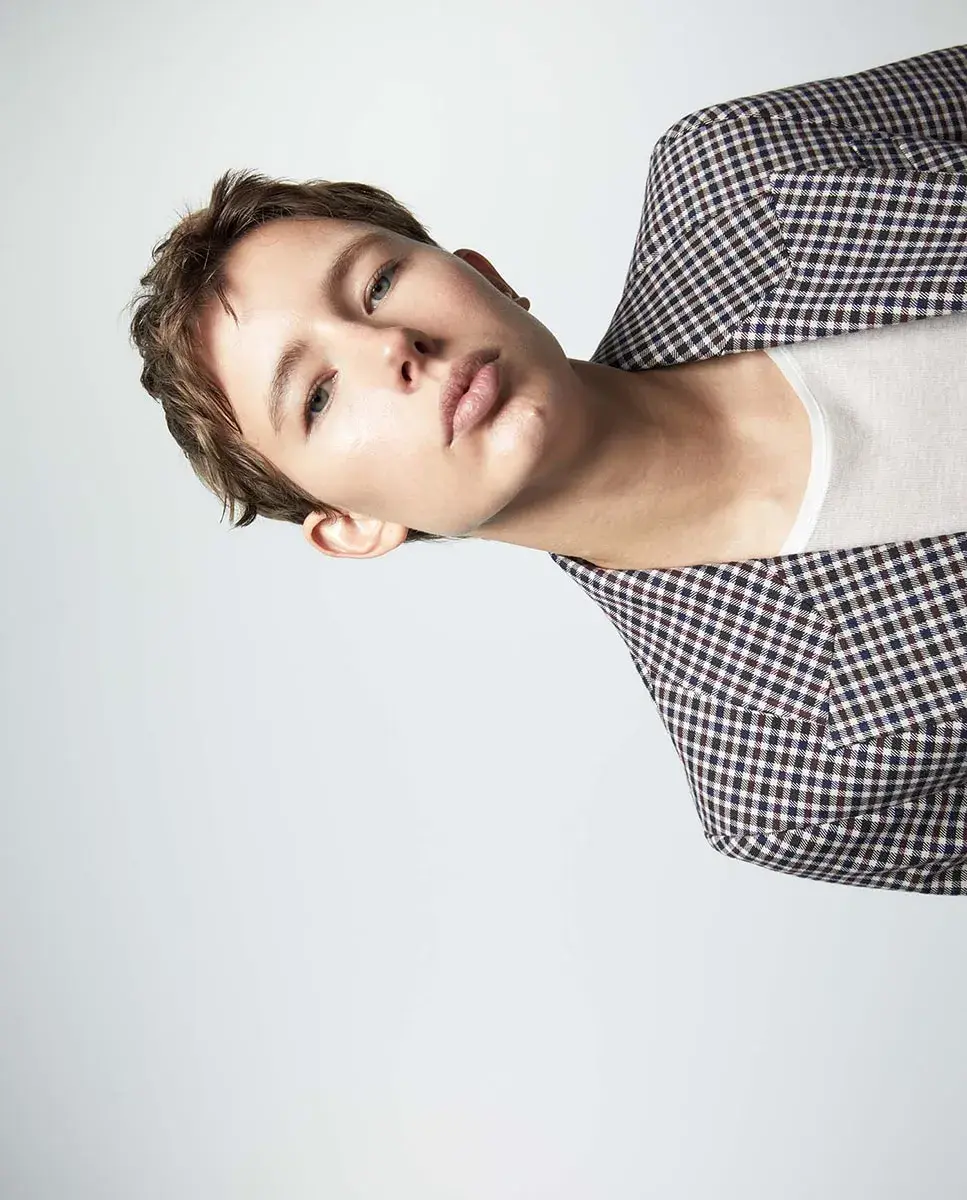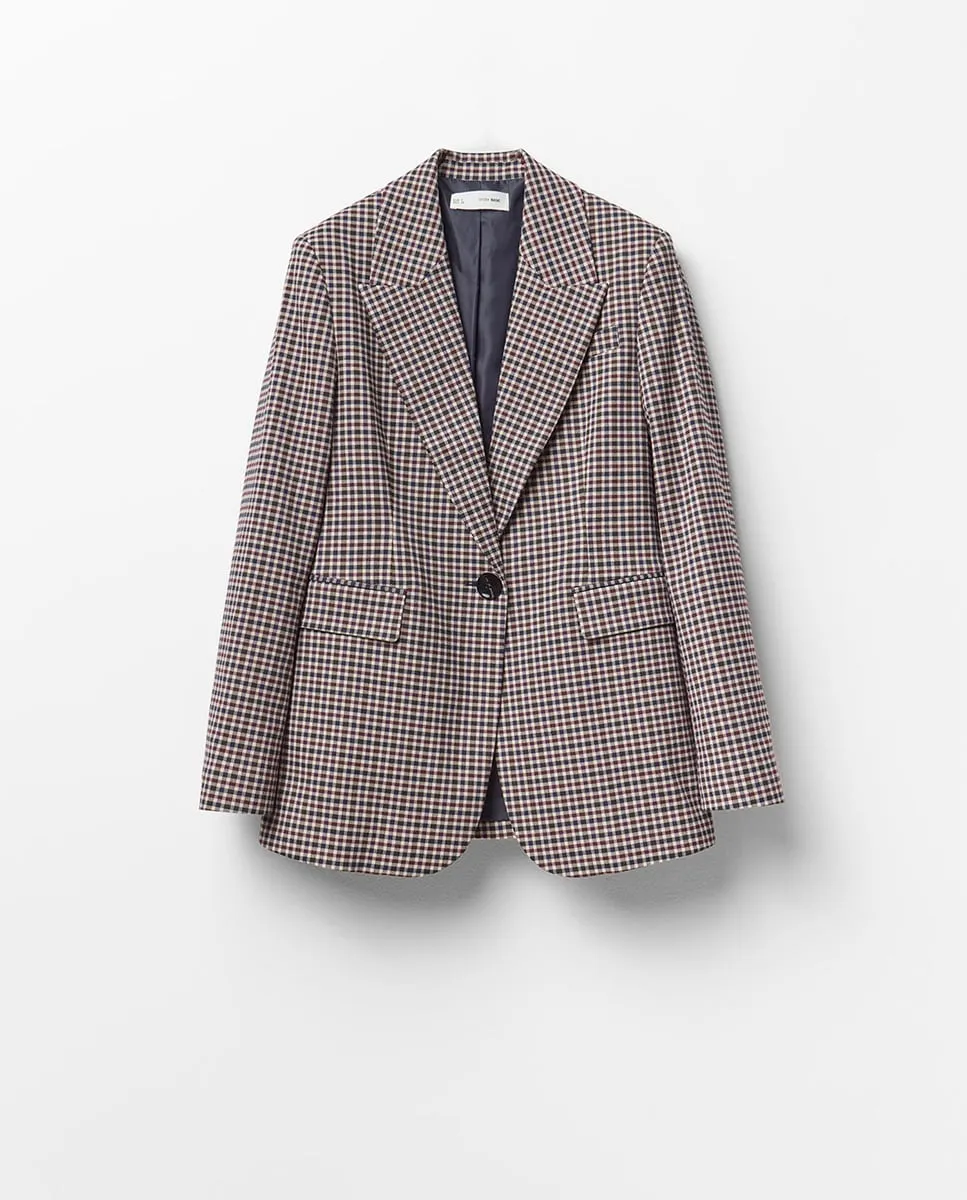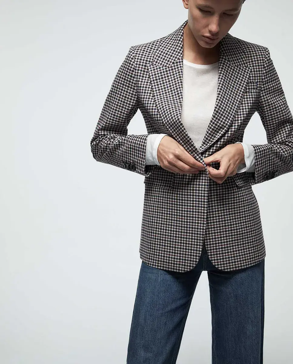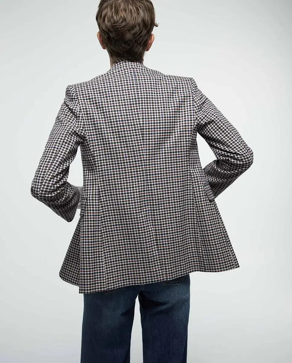 Клетчатый блейзер с лацканами. Передняя застежка на пуговицу