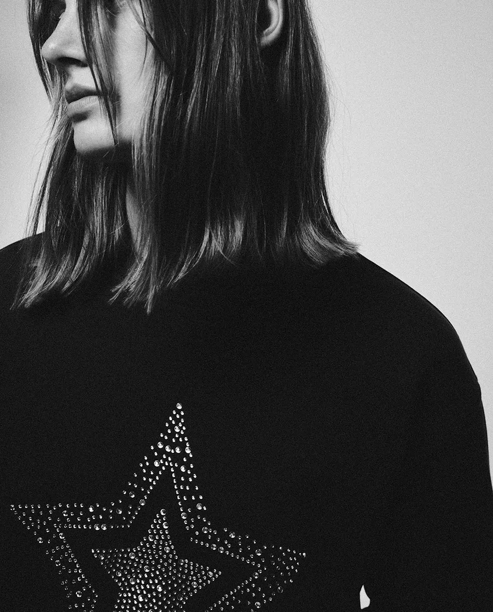 Толстовка с длинными рукавами и блестящей аппликацией на передней части. 100% хлопок