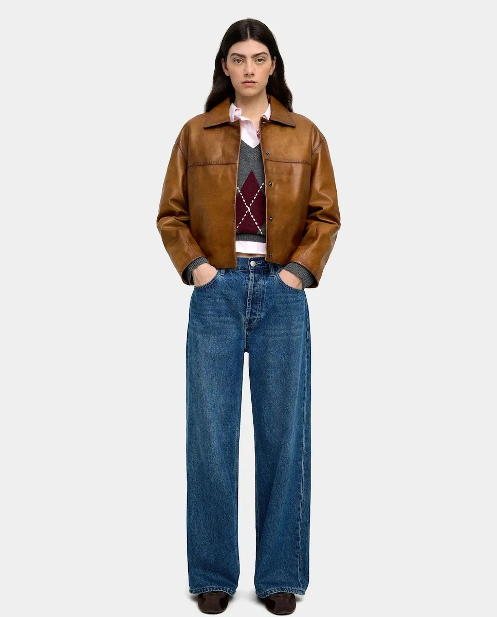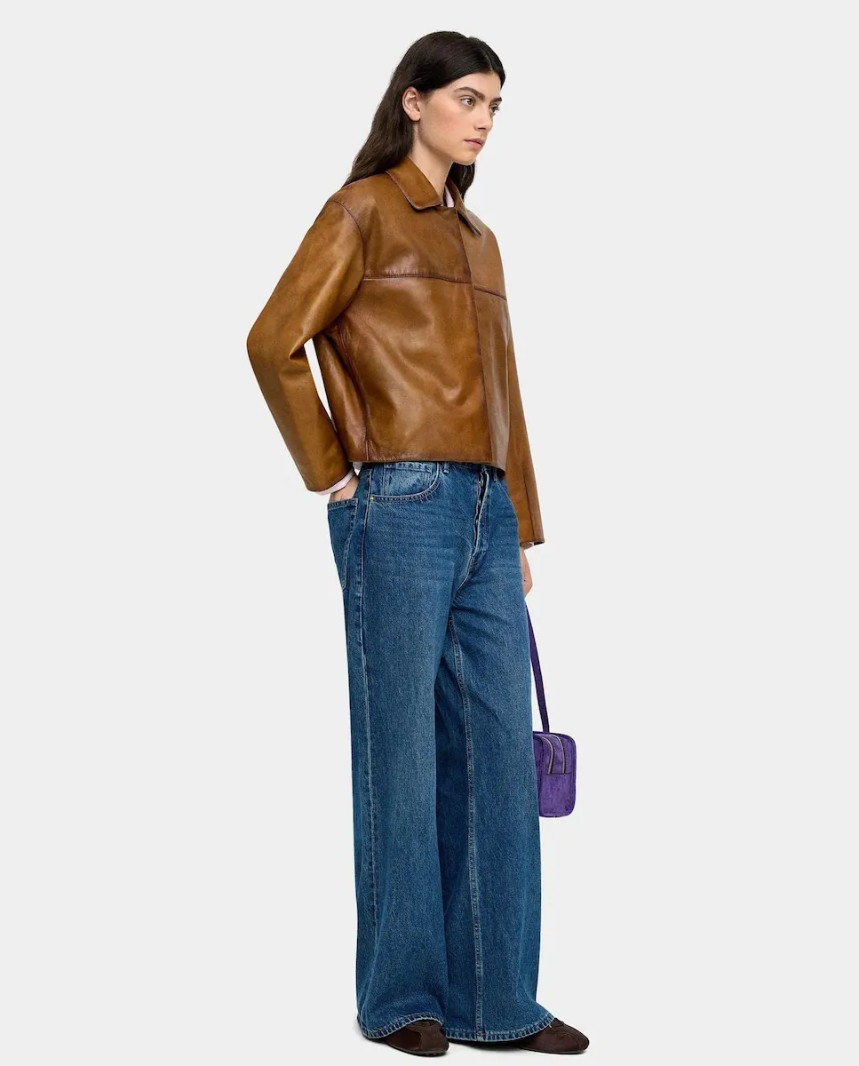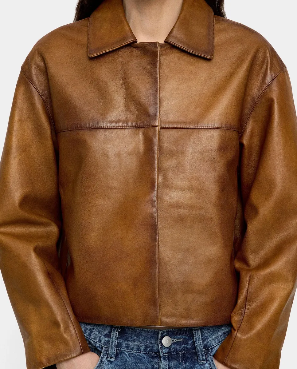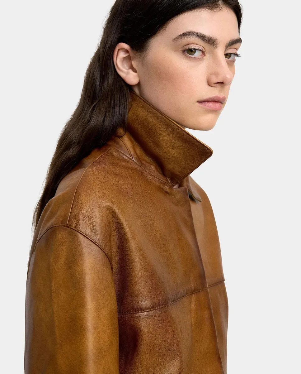 Женская куртка-пилот 100% кожа, гладкая Parfois, песочный