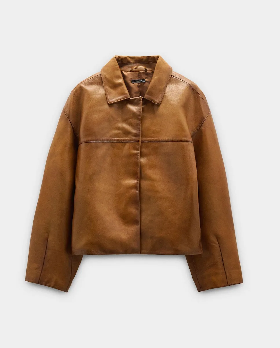 Женская куртка-пилот 100% кожа, гладкая Parfois, песочный 18 891₽