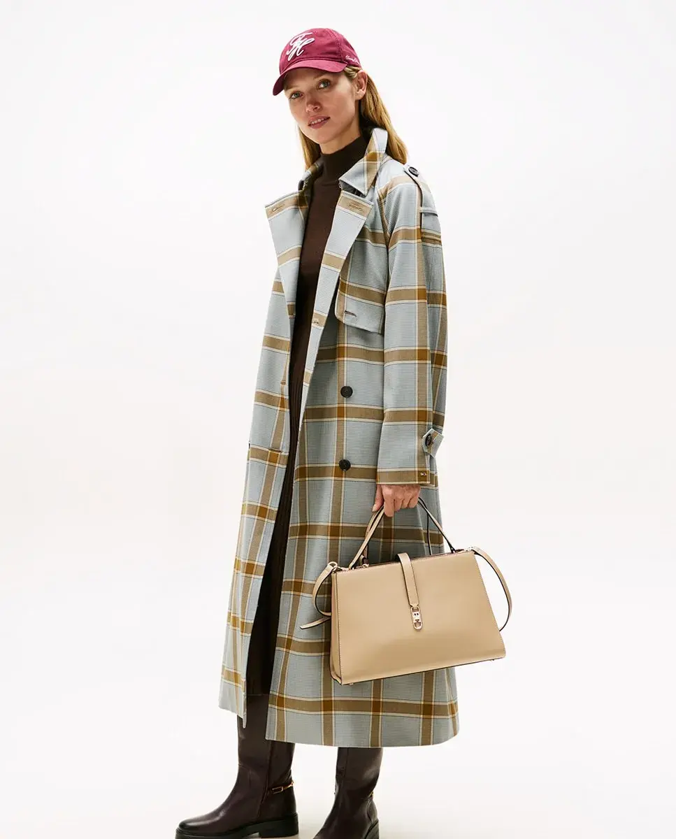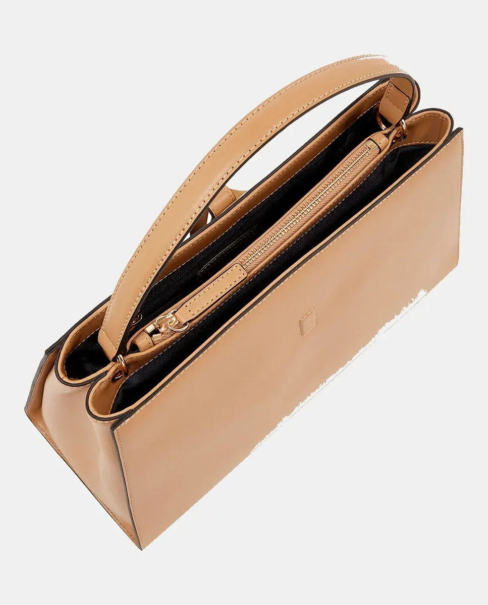 Сумка-сэтчел женская из экокожи цвета верблюжьей шерсти. Дизайн с ручкой и регулируемым плечевым ремнем. Деталь с логотипом Tommy Hilfiger на застежке.
