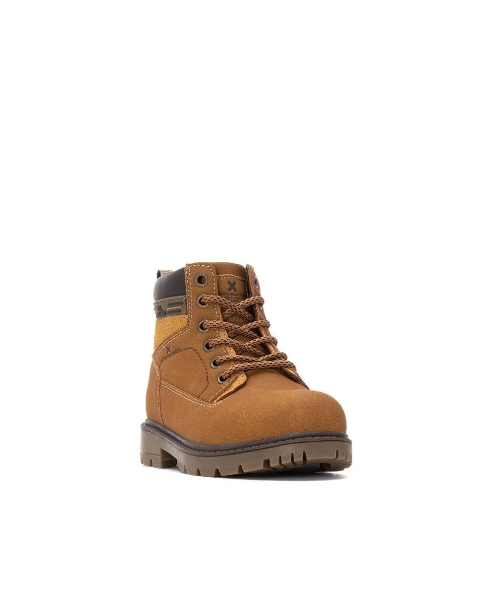 Детские ботинки от бренда Xti Kids. Изготовлены из прочного синтетического материала, легко очищаются и требуют минимального ухода. Дизайн вдохновлен классическим стилем трекинговых ботинок, с передними шнурками для индивидуальной регулировки и боковой молнией для удобного надевания. Прочная резиновая подошва обеспечивает стабильность и хорошее сцепление. Идеально подходят для повседневного и функционального образа. Эта модель сертифицирована как веганская организацией PETA (Всемирная организация по защите прав животных).